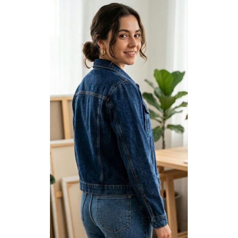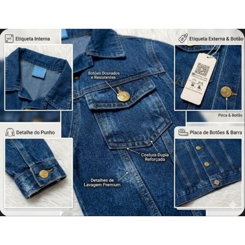 Jaqueta Jeans Curta Feminina Blusa Feminina Azul com Botões Dourados sem Lycra M,G,GG