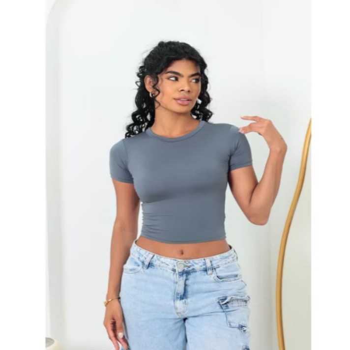 blusa Baby look Feminina Manga Curta Baby Tee Slim Fit