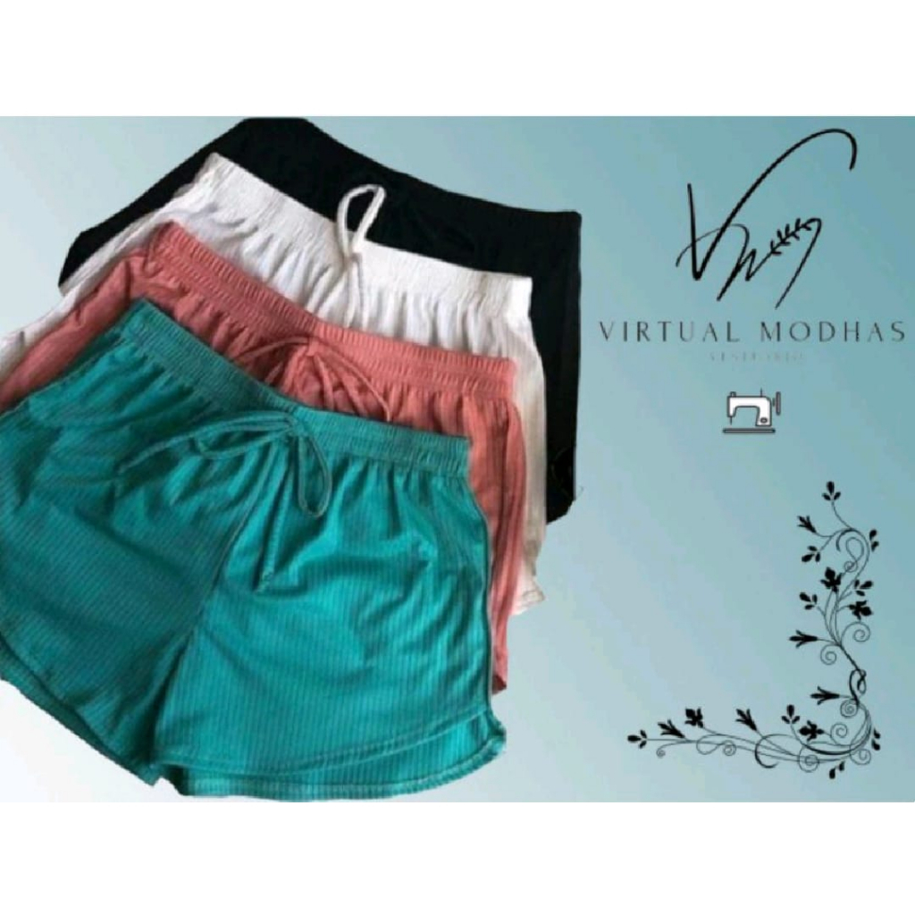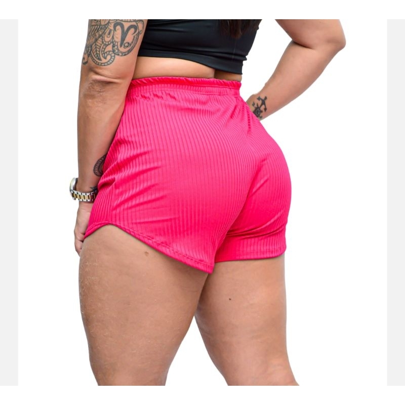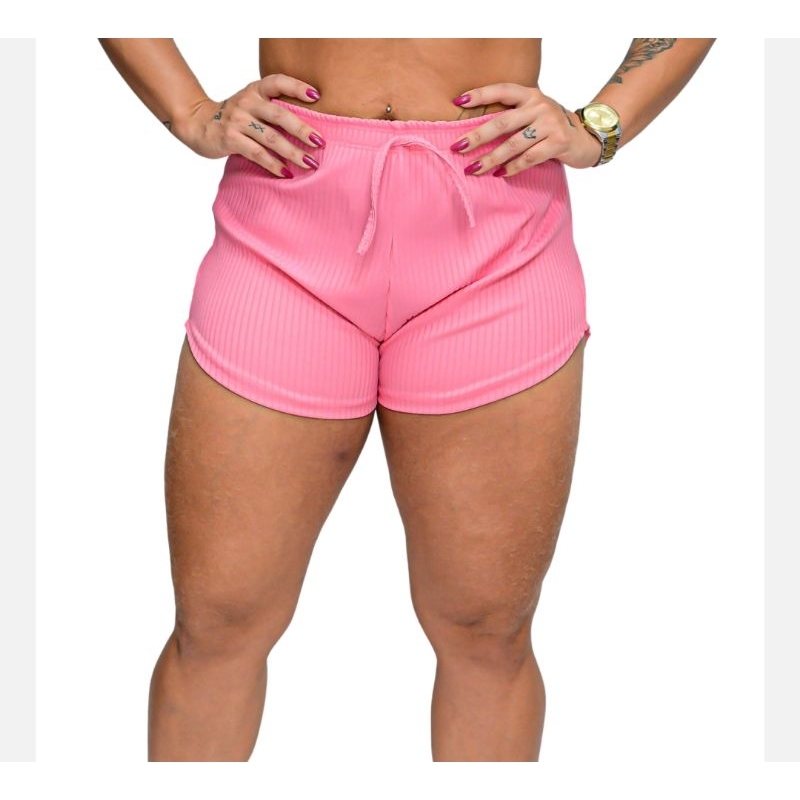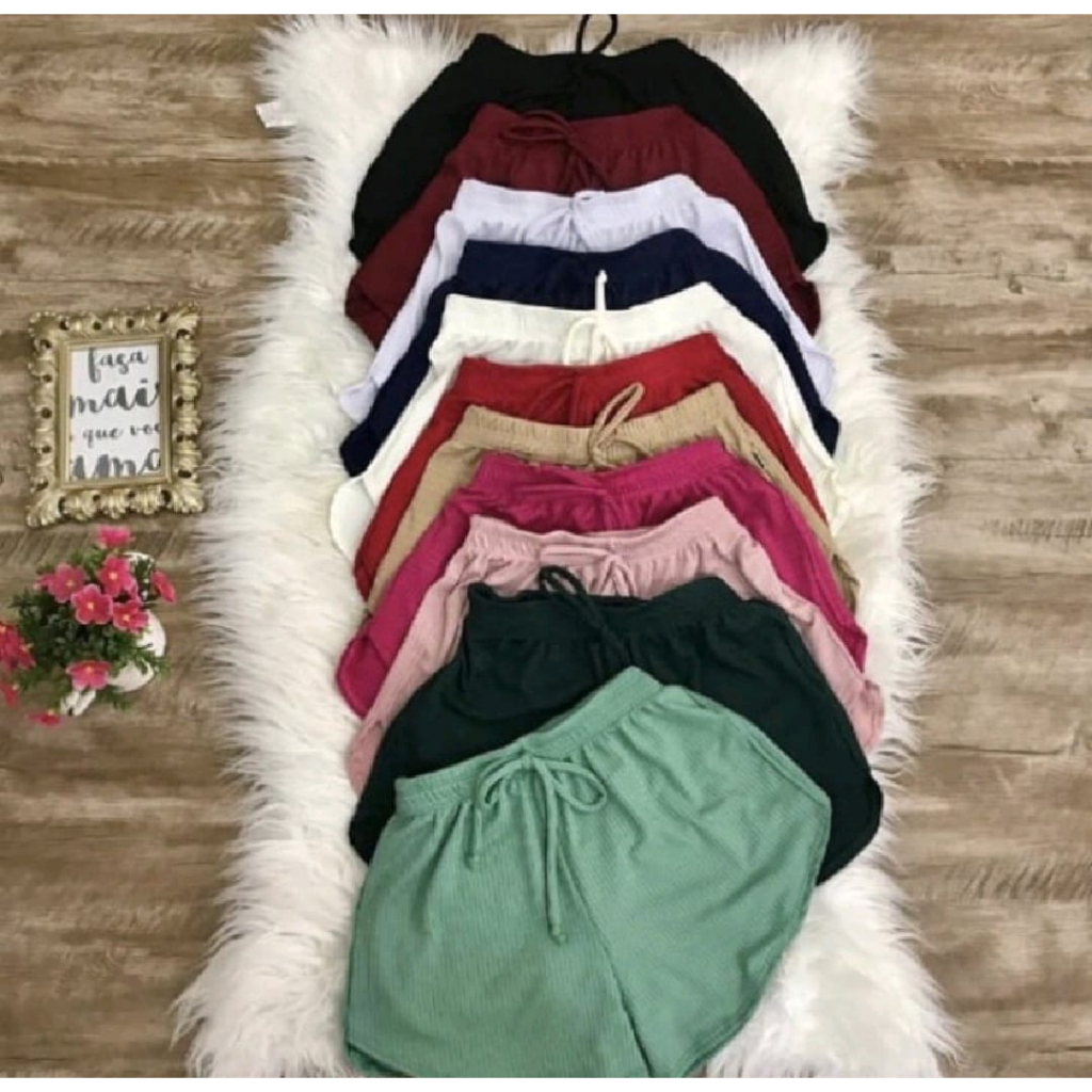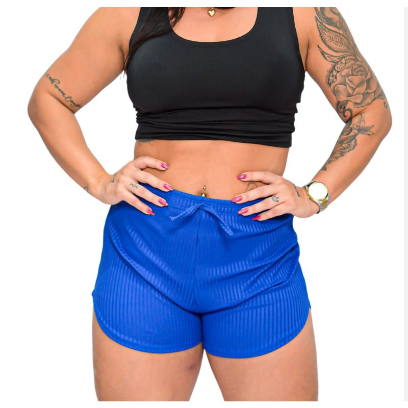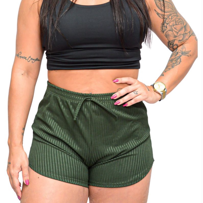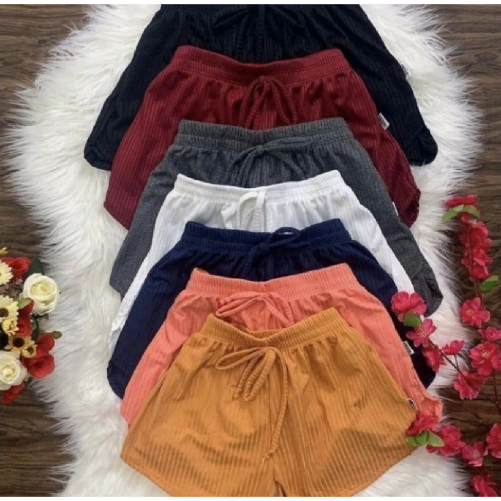 Kit 3 Shorts Feminino Malha Canelada Confortável Casual