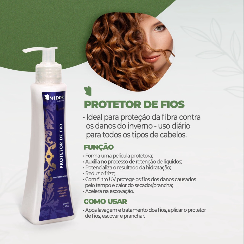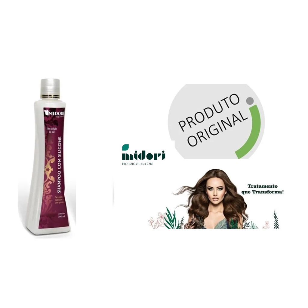 KIT MIDORI SHAMPOO COM SILICONE 500 ML +HIDRATAÇÃO DE IMPACTO 500 ML + PROTETOR DE FIO 250 ML