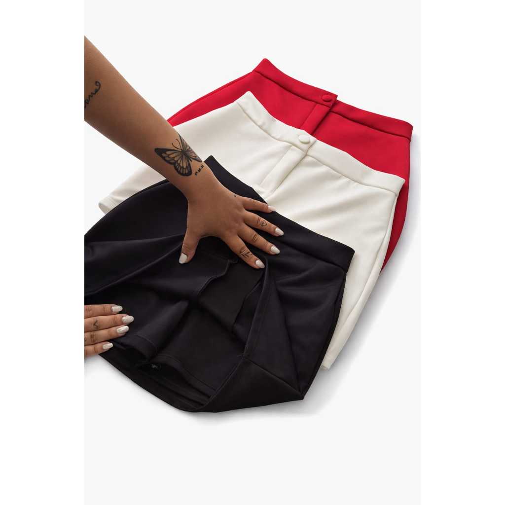 Short Saia Feminino Alfaiataria com botão encapado• Cintura Alta • Moda 2026 • Tendência