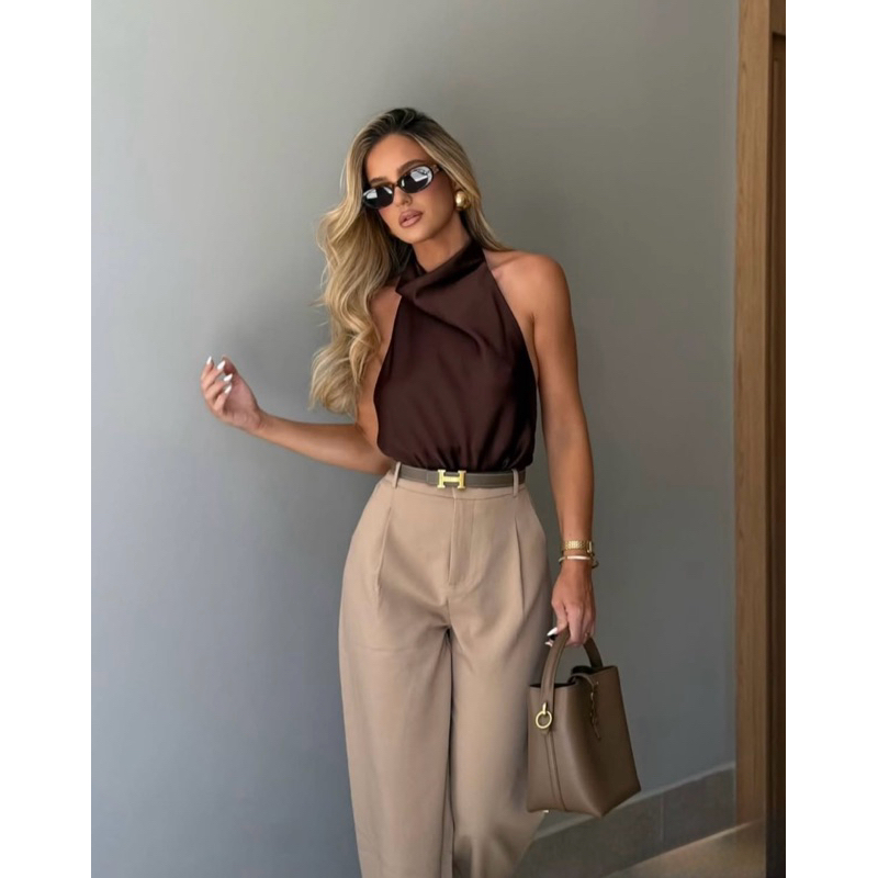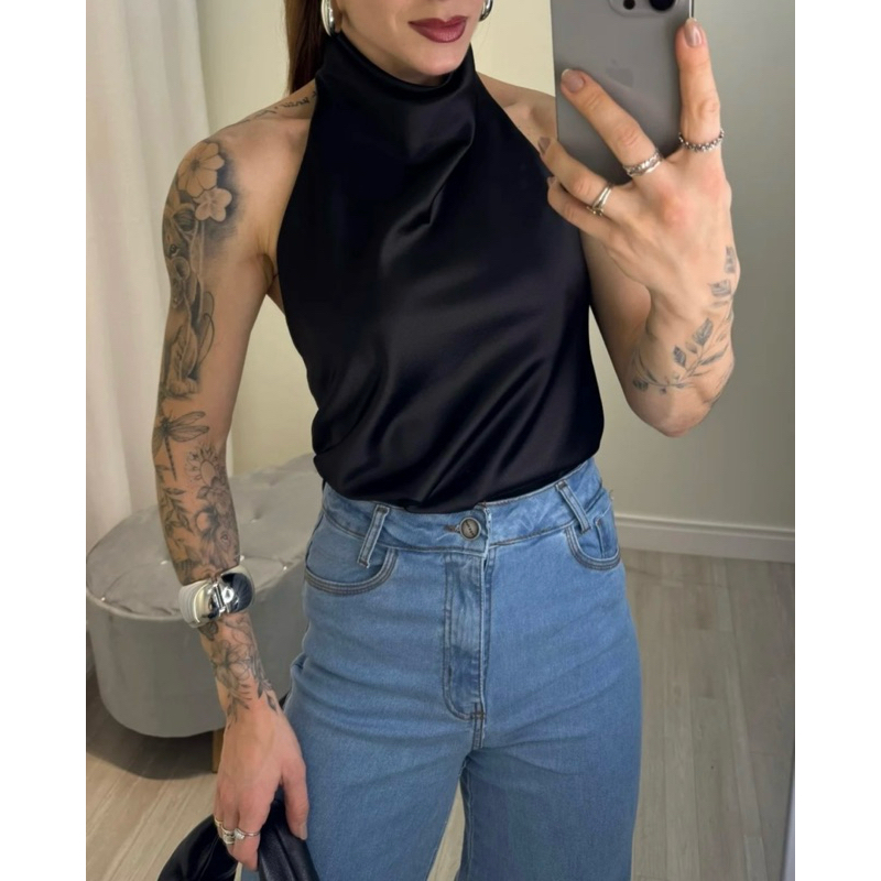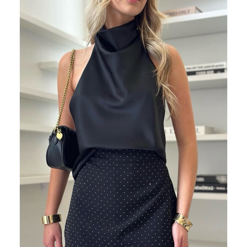 Blusa Frente Única Feminina Acetinada Gola Alta Elegante – Festa, Casual e Trabalho