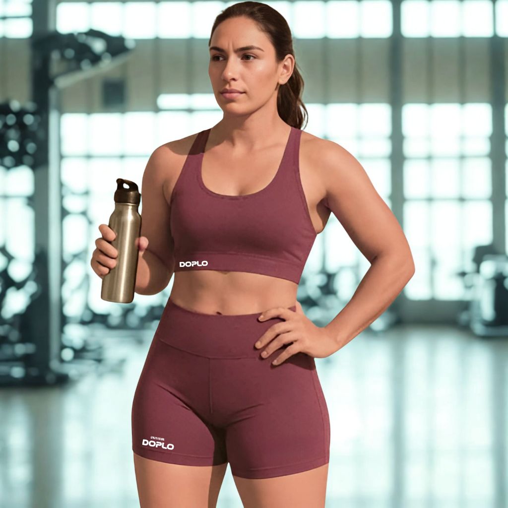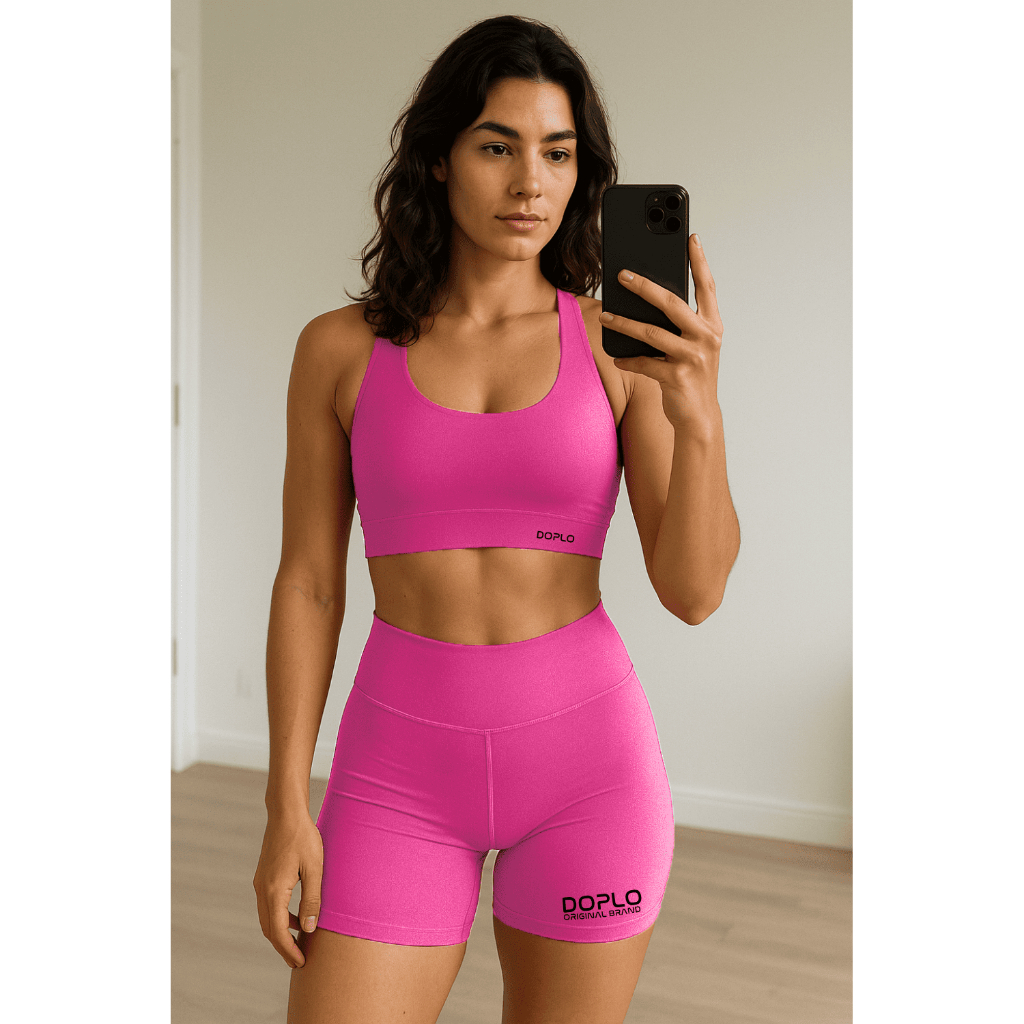 Conjunto Short e Top Academia Fitness Feminino Cintura Alta Zero Transparencia Original Academia