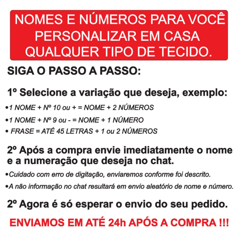 Fonte termocolante nome e número para personalizar camisas PROMOÇÃO