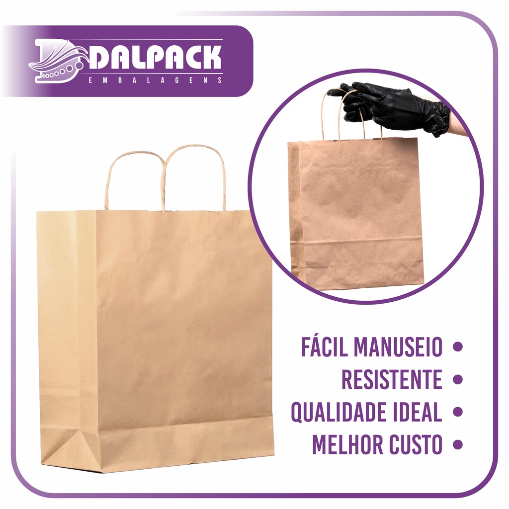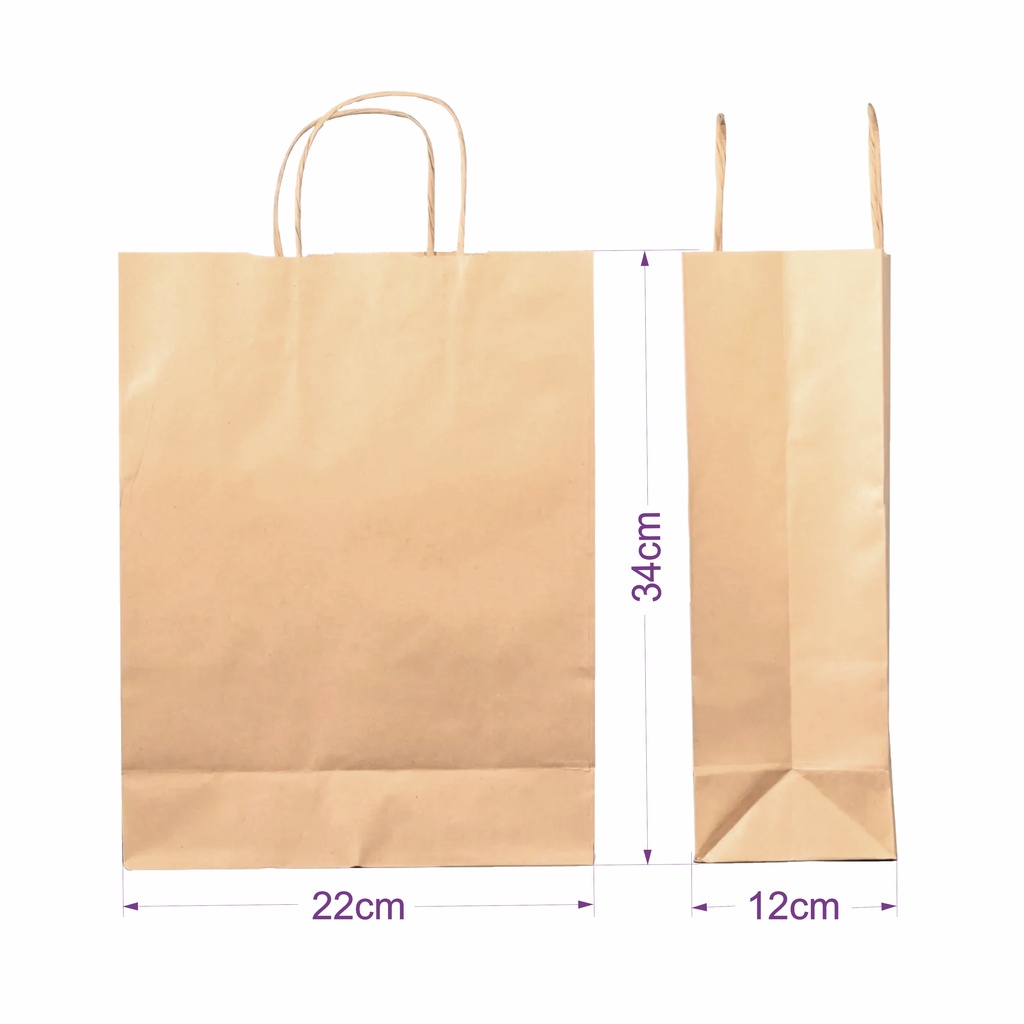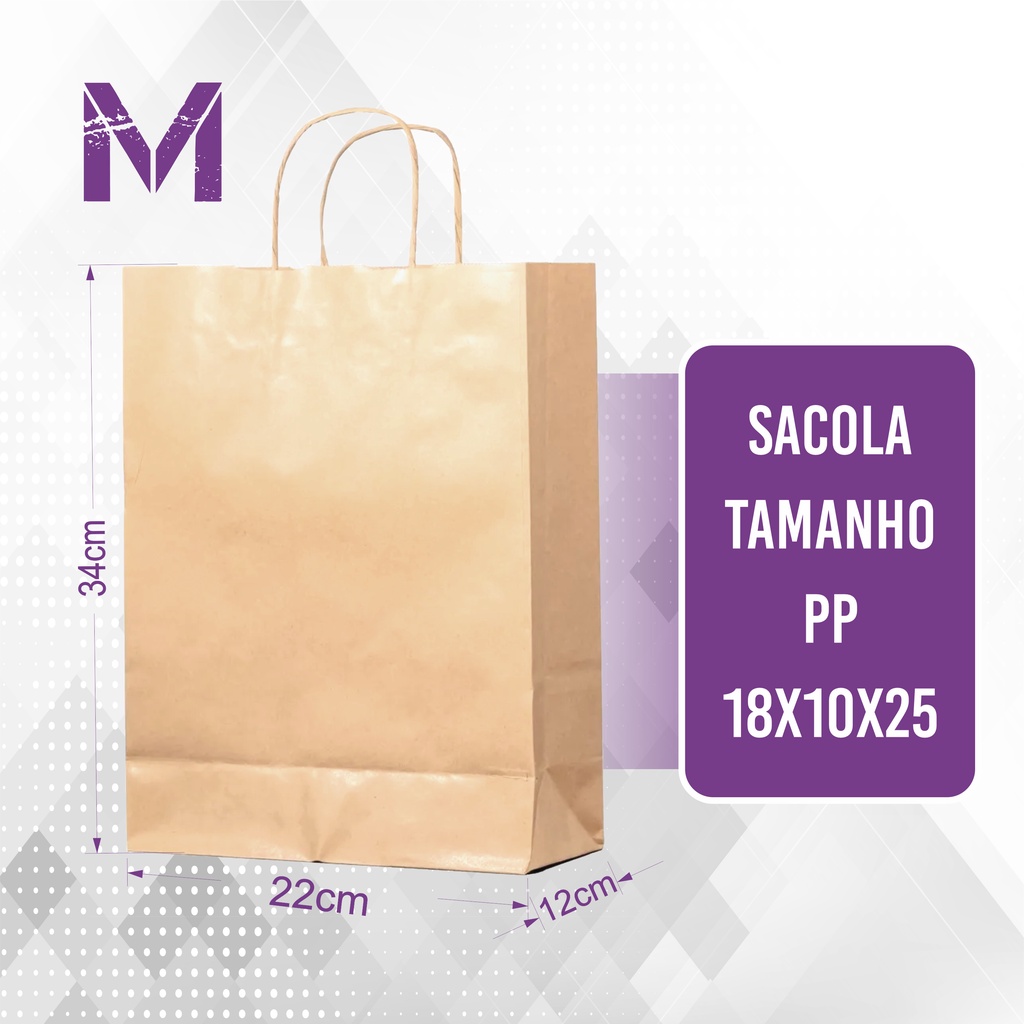 Sacola de Papel Kraft - 50 Unidades - M (22x12x34) - Lisa Sem Impressão