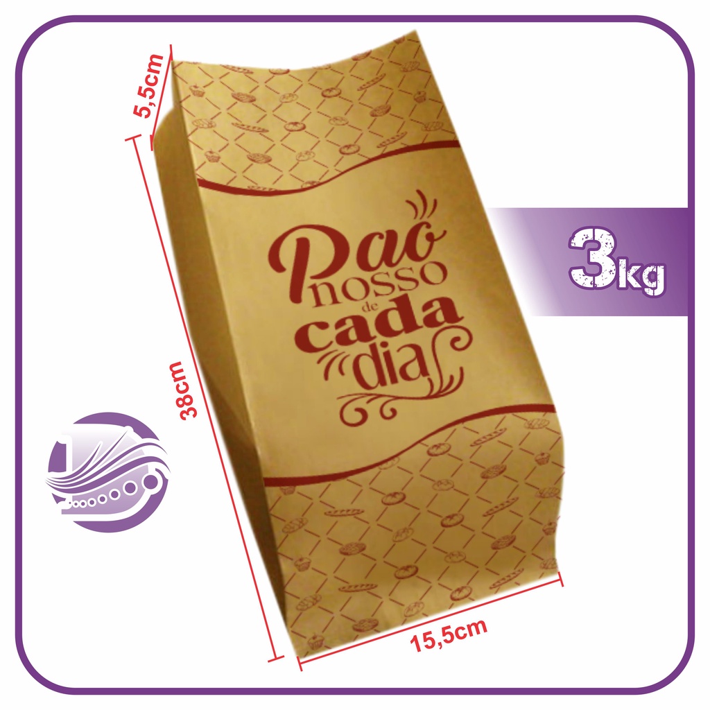 Sacos De Papel para Pão - Kraft Pardo 3kg - Pão Nosso