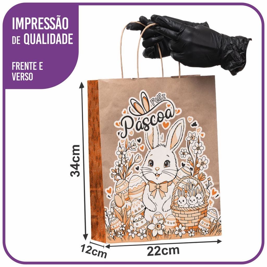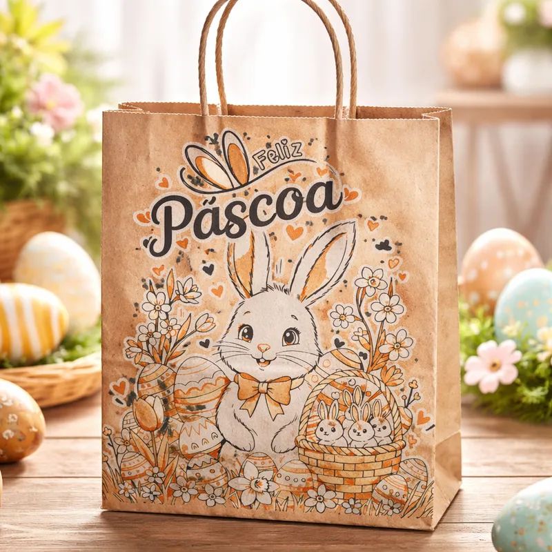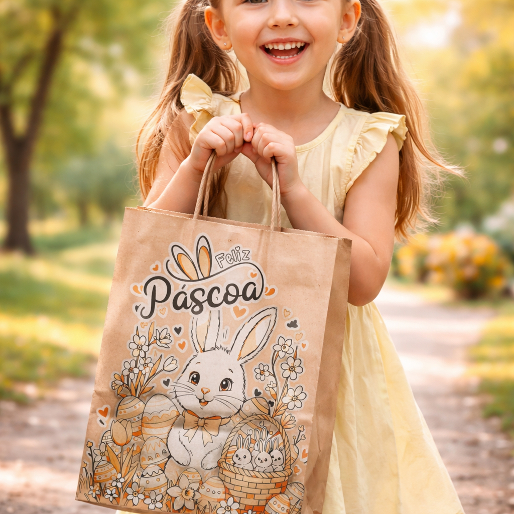 Sacola Kraft Feliz Páscoa (02) M 22x12x34 - (50 Unidades)