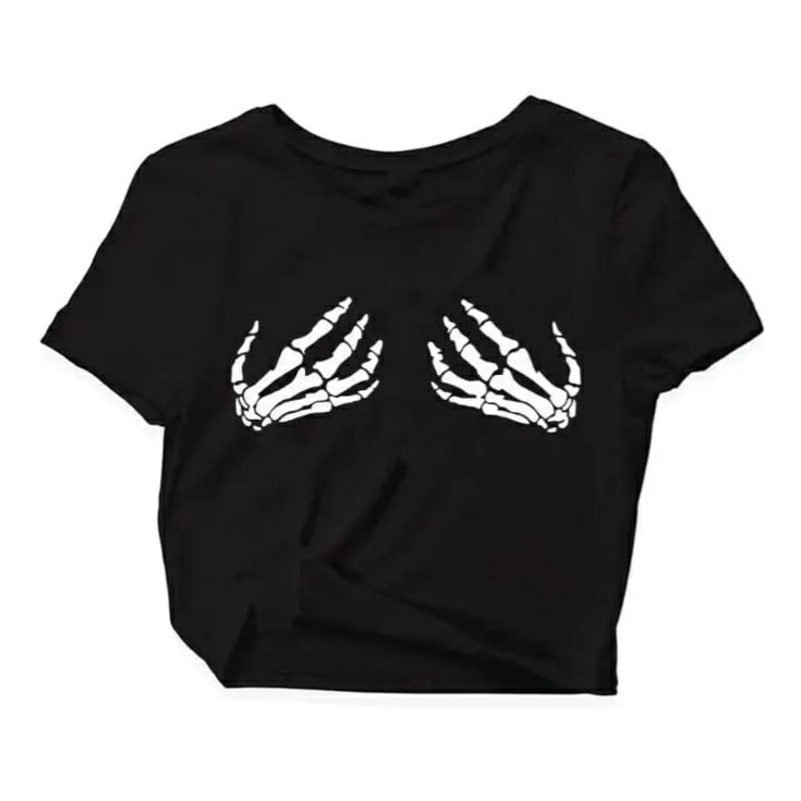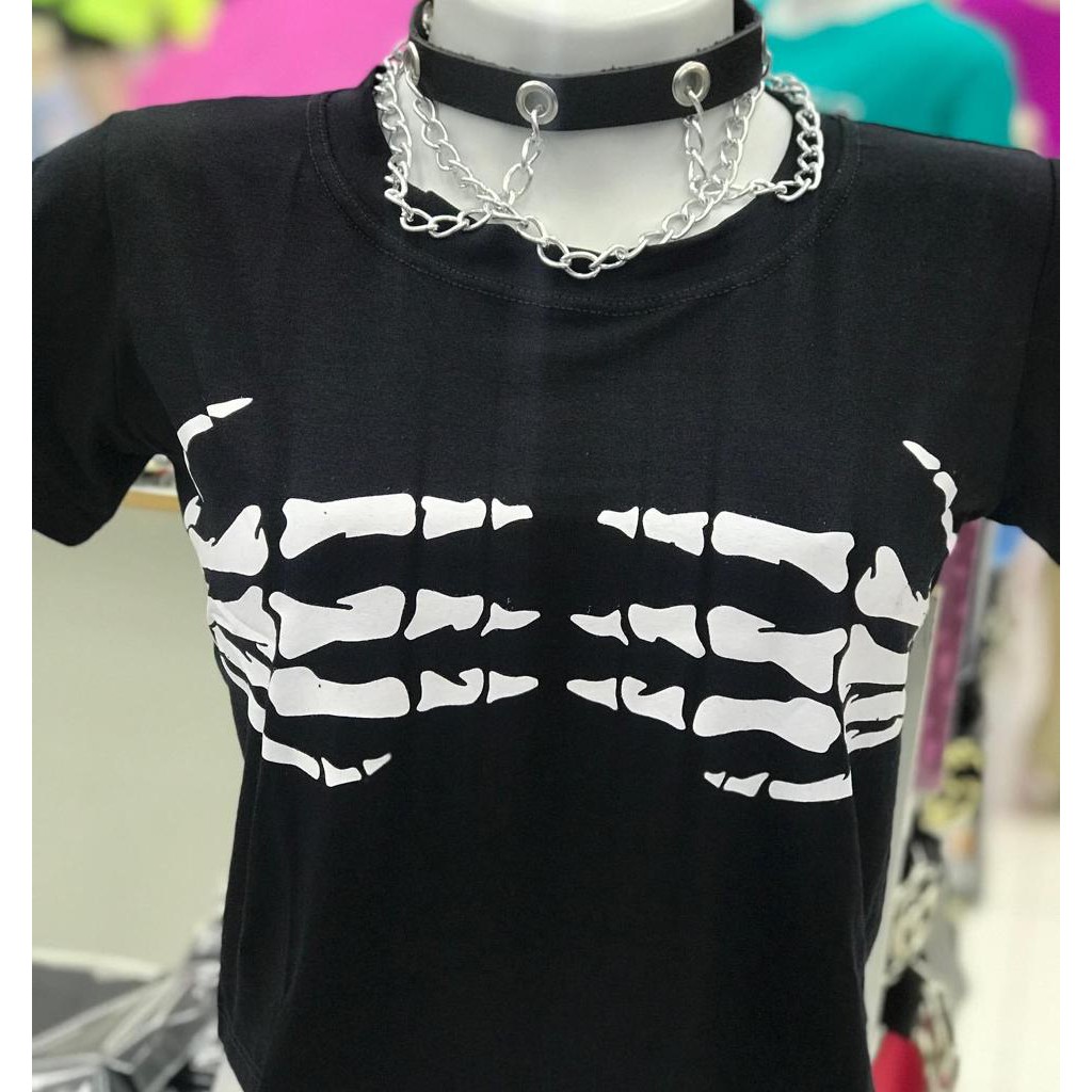 Cropped Mão Caveira Feminino Tumblr Blogueira Blusinha