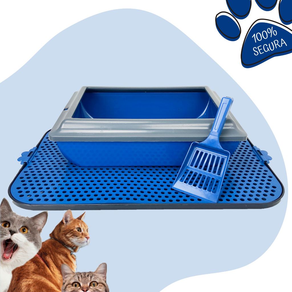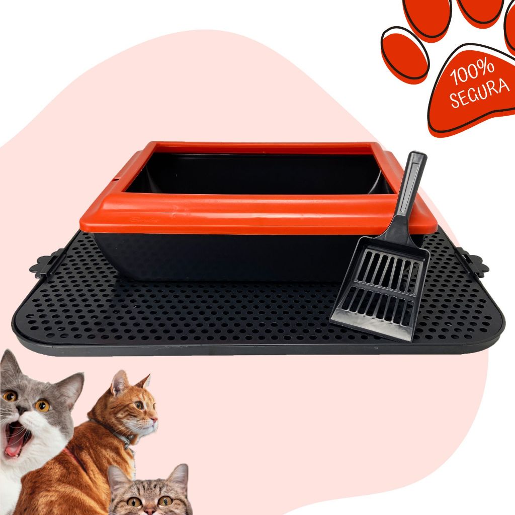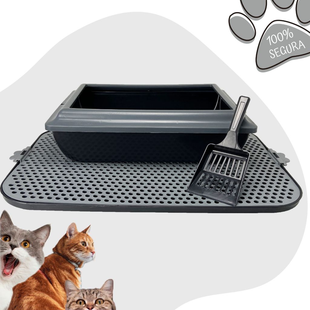 Caixa De Areia Para Gatos Borda Alta Tapete Coletor Areia e Pá Higiênica Kit Completo