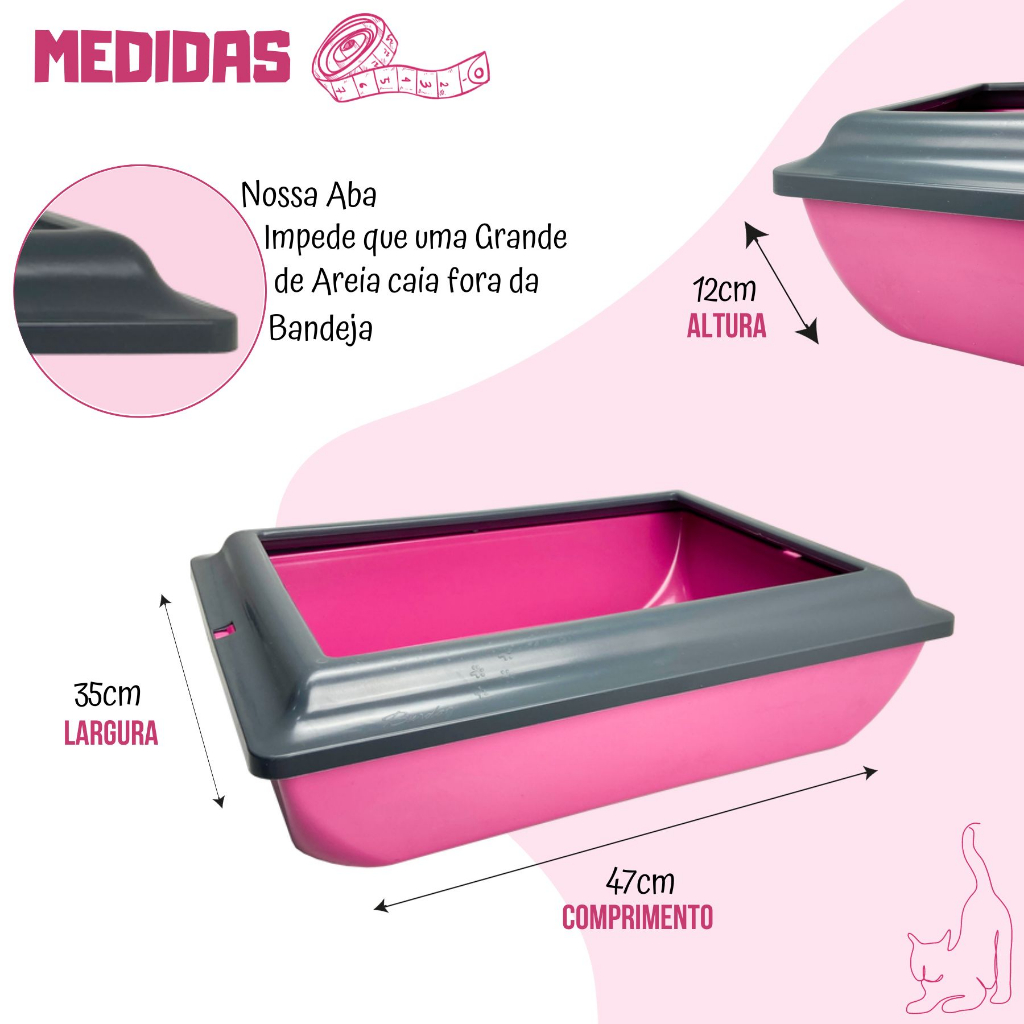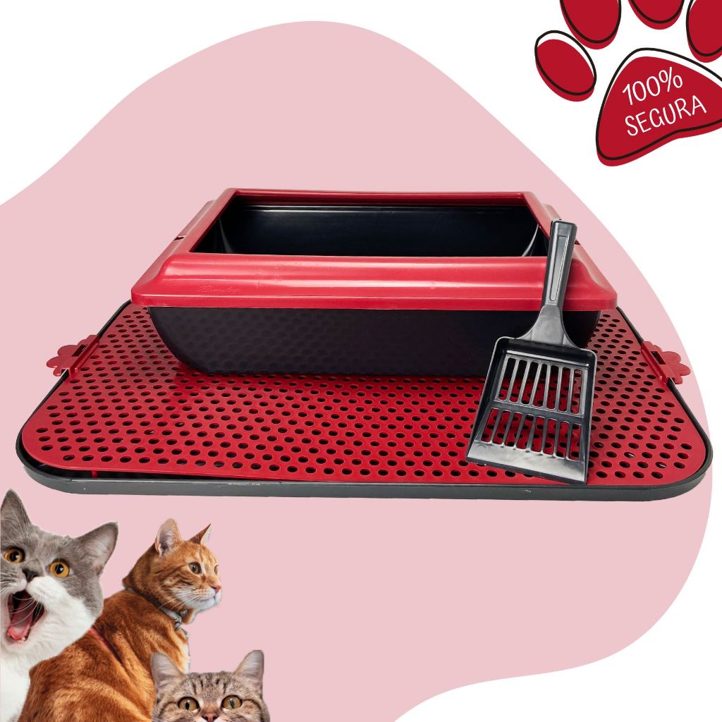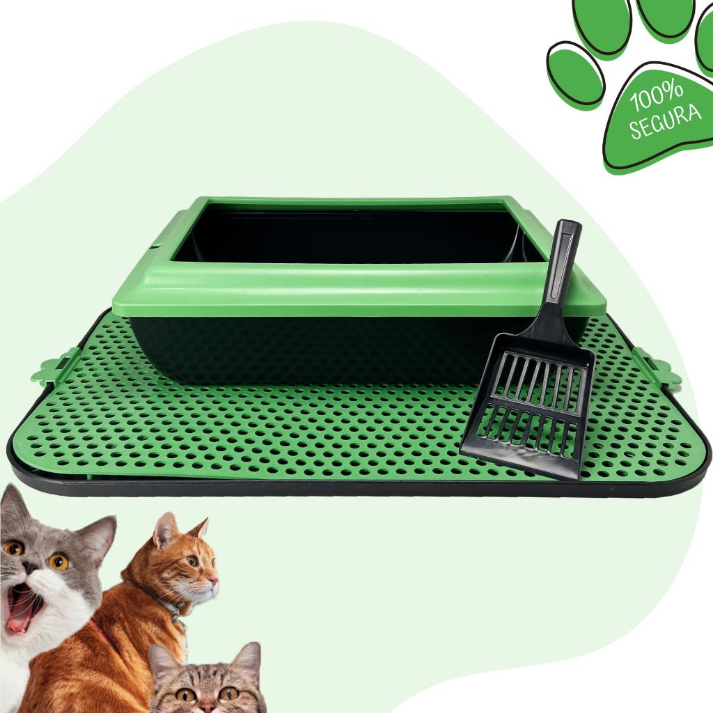 Caixa De Areia Para Gatos Borda Alta Tapete Coletor Areia e Pá Higiênica Kit Completo