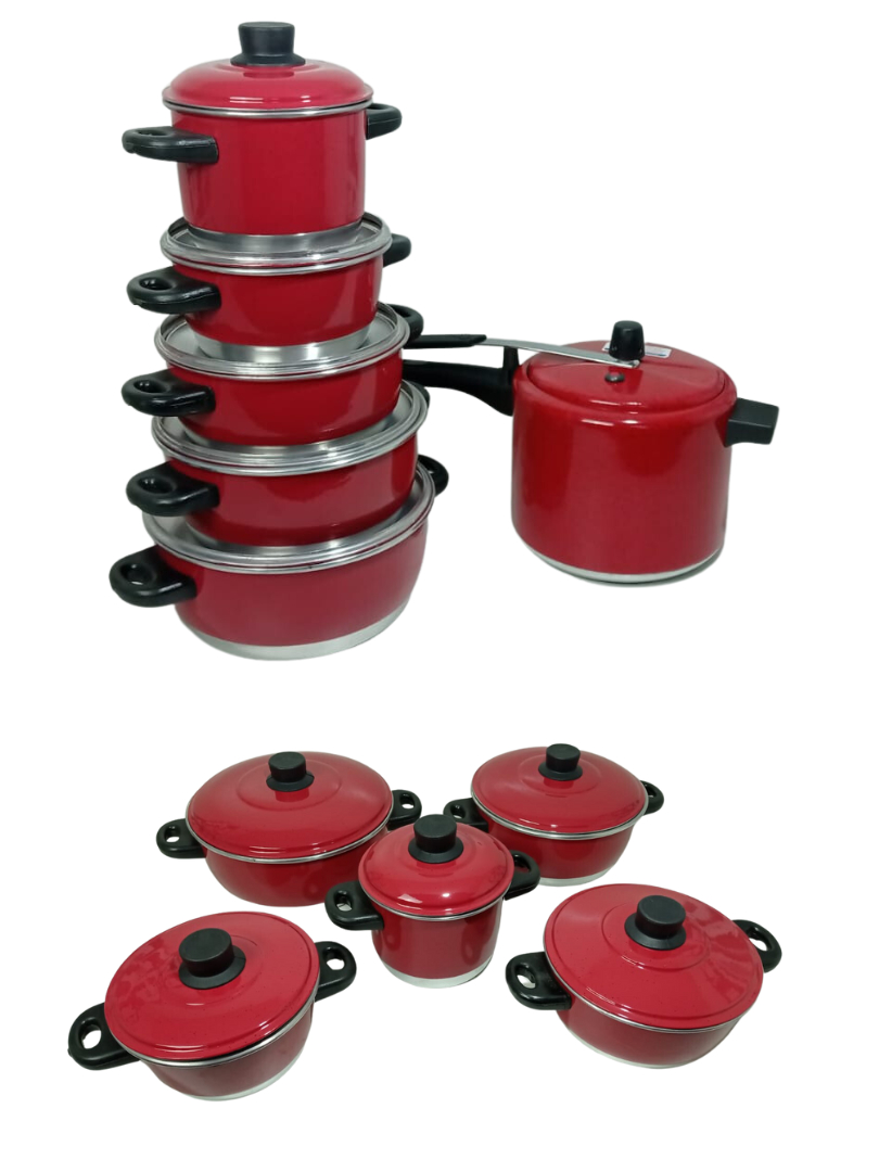 Kit Jogo de Panela 5 Peça + Panela de Pressão 4,5 L Vermelha