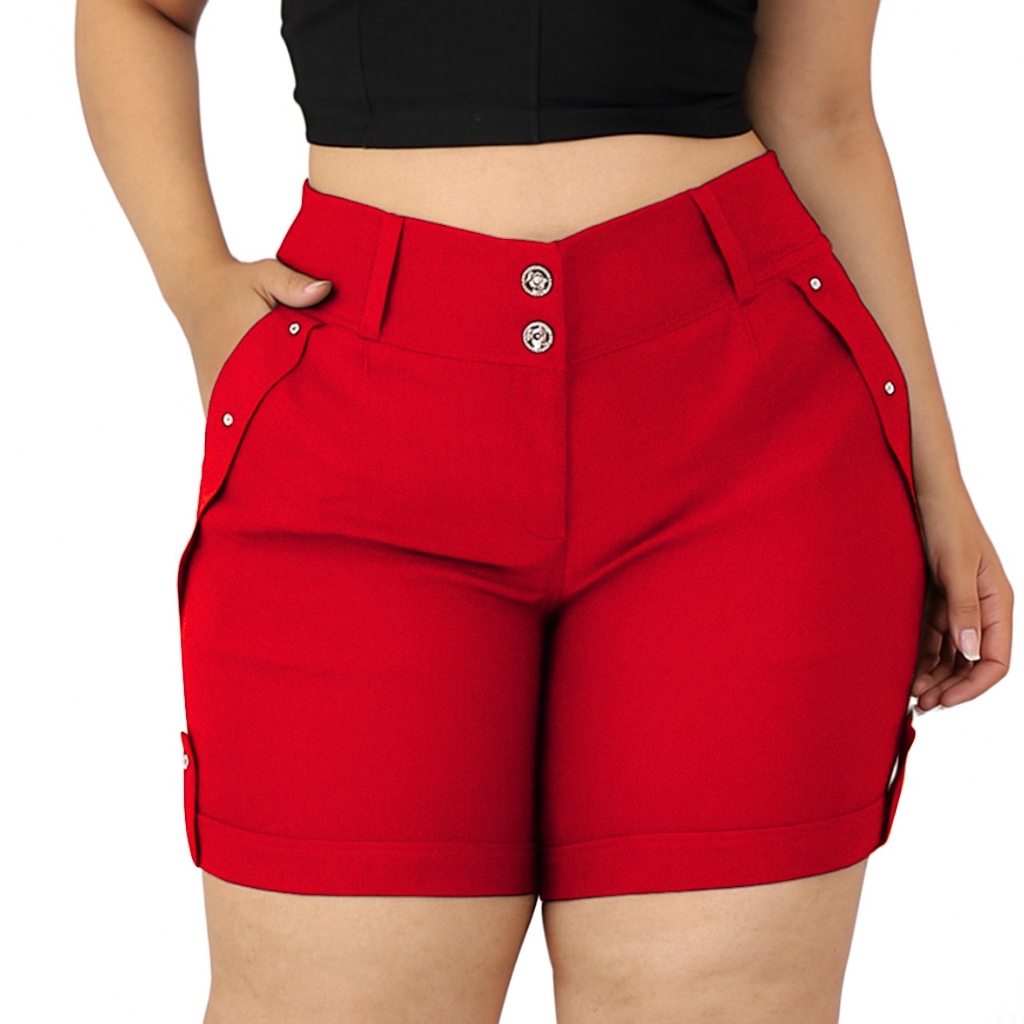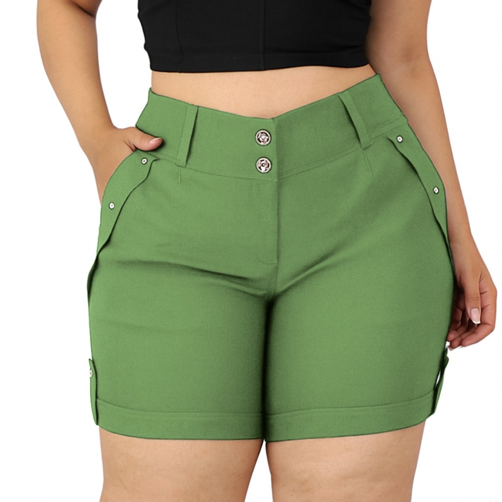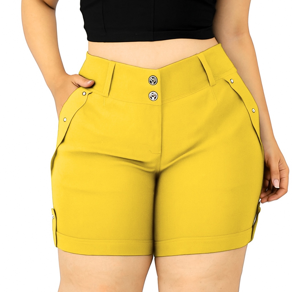 Shorts Feminina Plus Size Bengaline com bolsos