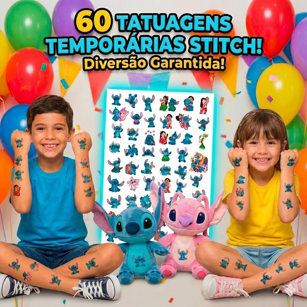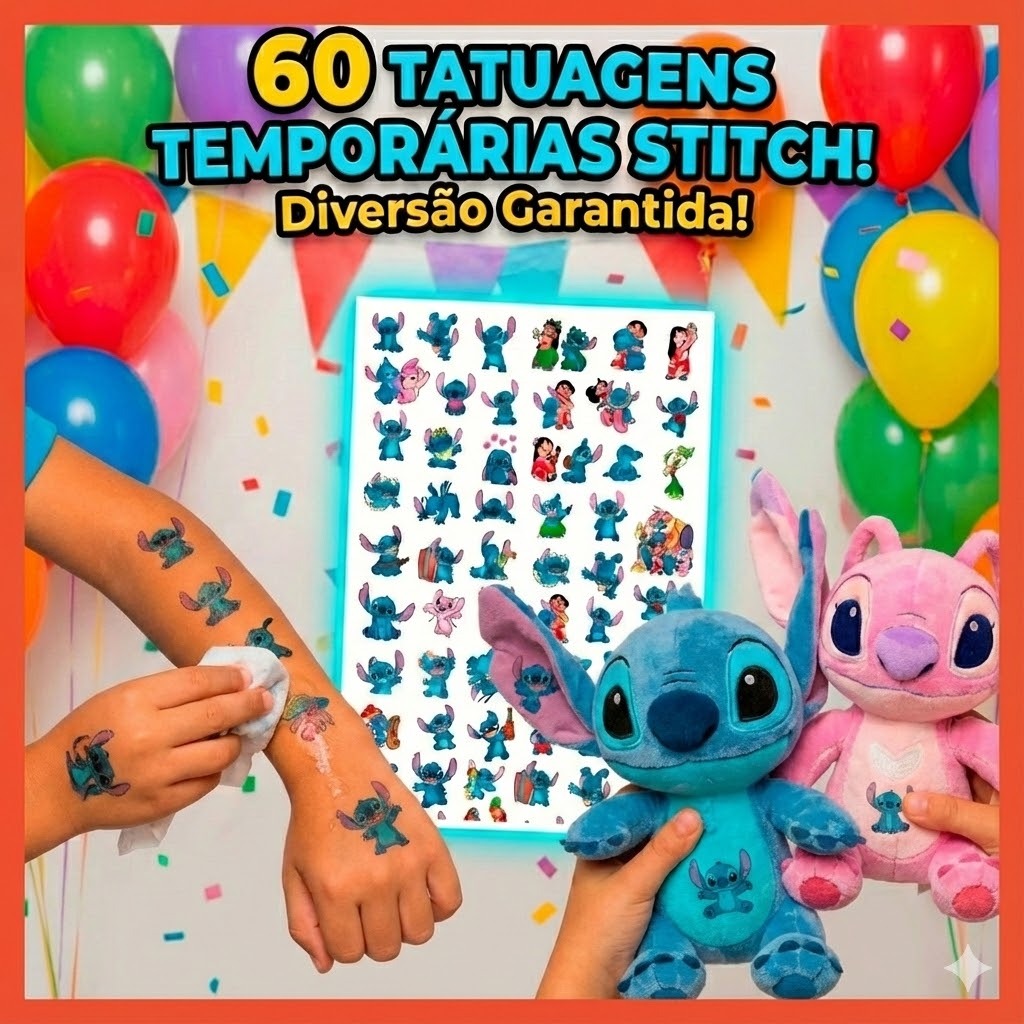 60 Tatuagens Temporaria Stitch Premium 20x28cm