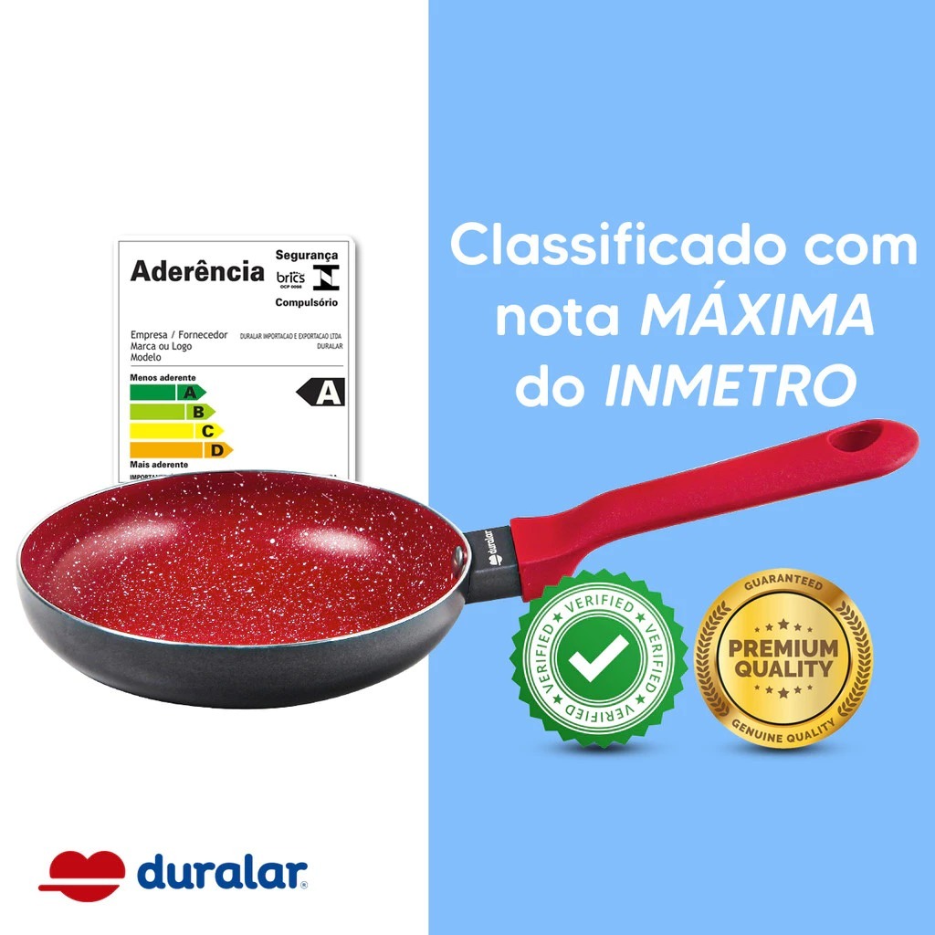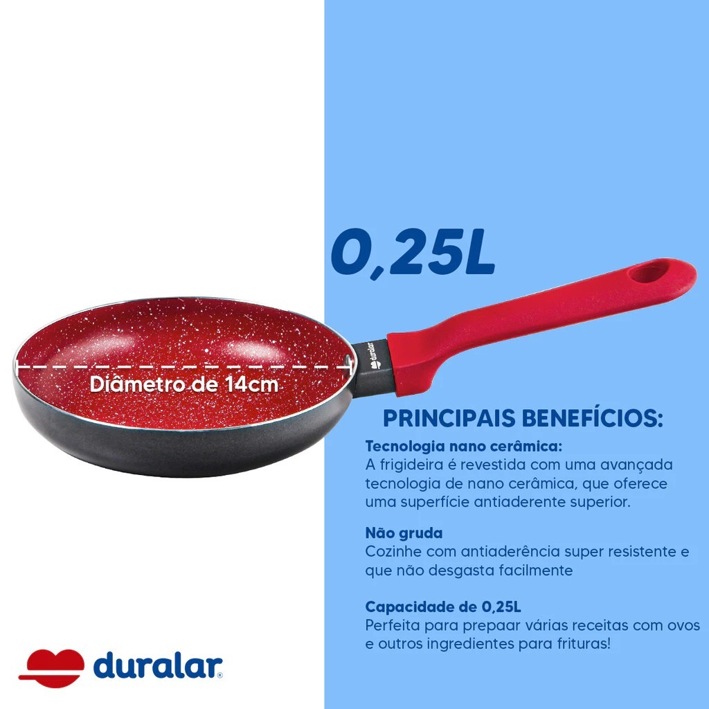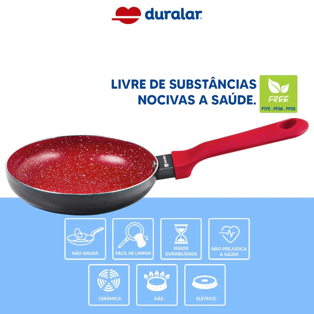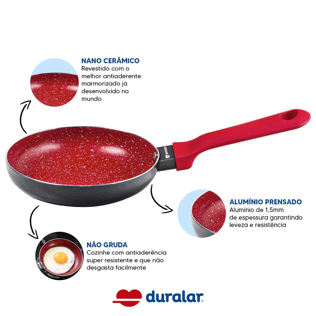 Frigideira Ovo Cerâmica Antiaderente N14 Red Marble Fogão Cooktop Vermelho Duralar