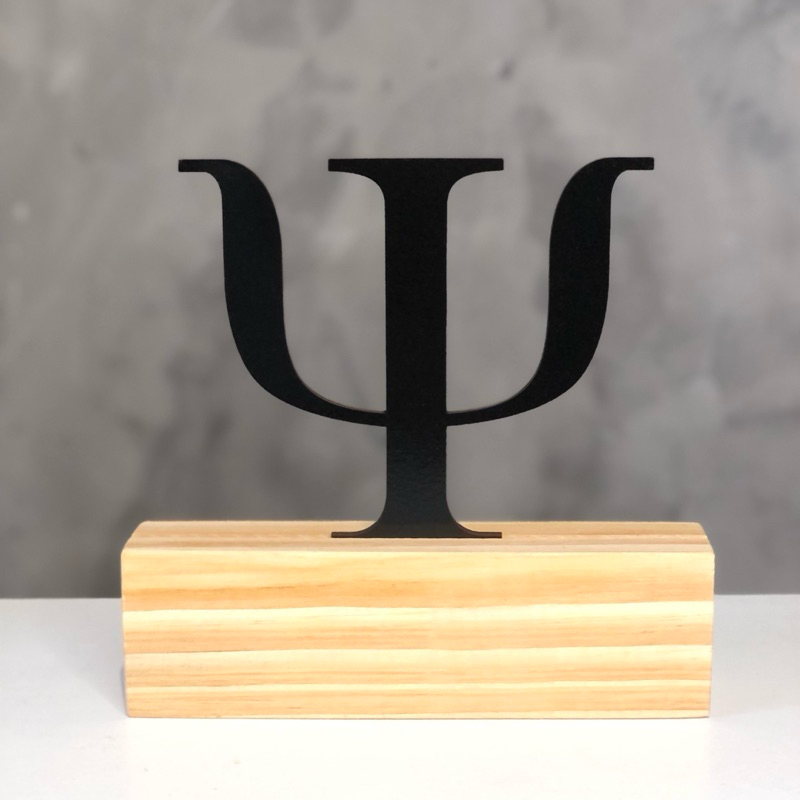 Emblema Psicologia Símbolo Psi Psicologia em MDF com Base Madeira PINUS Decoração Profissão Consultório Presente Patch