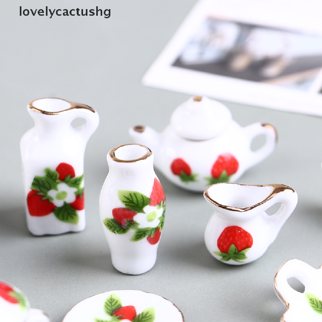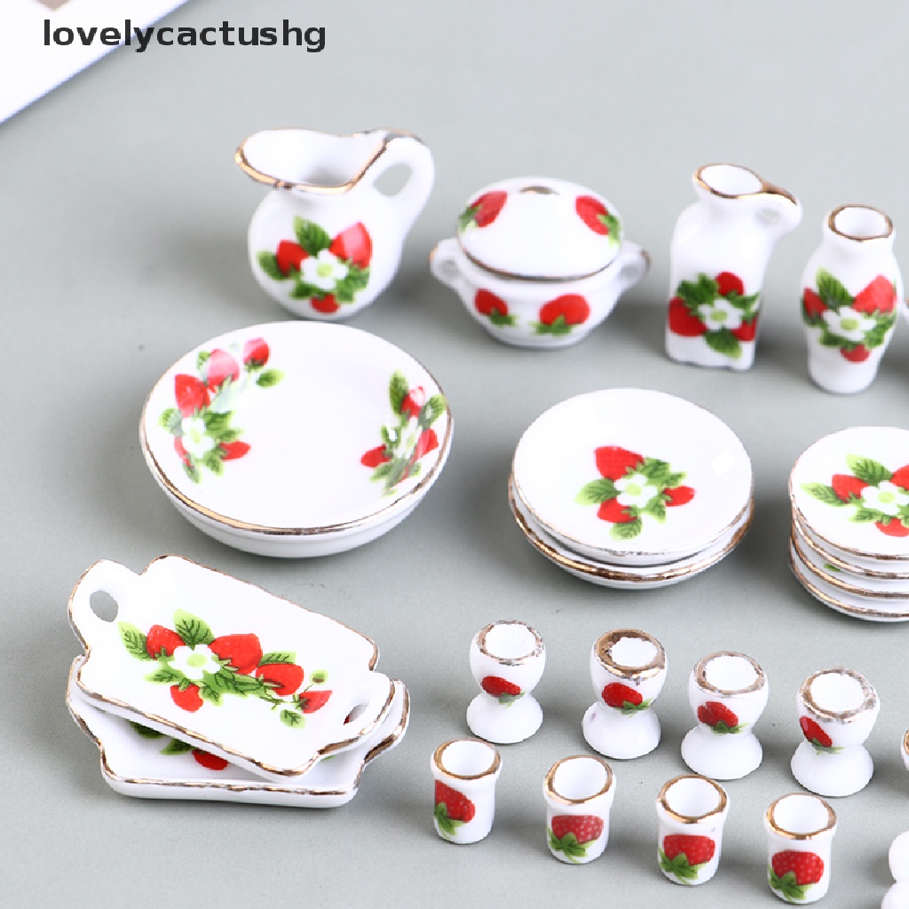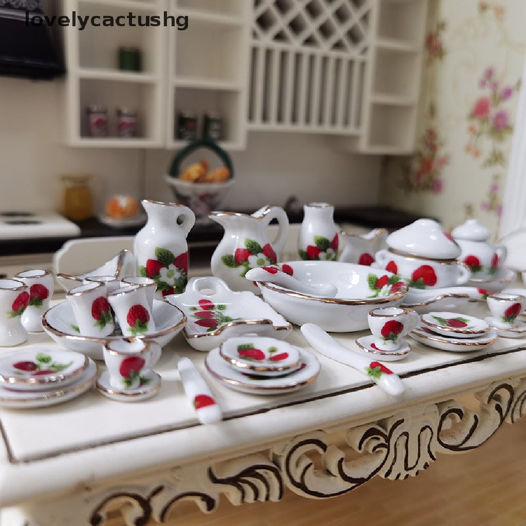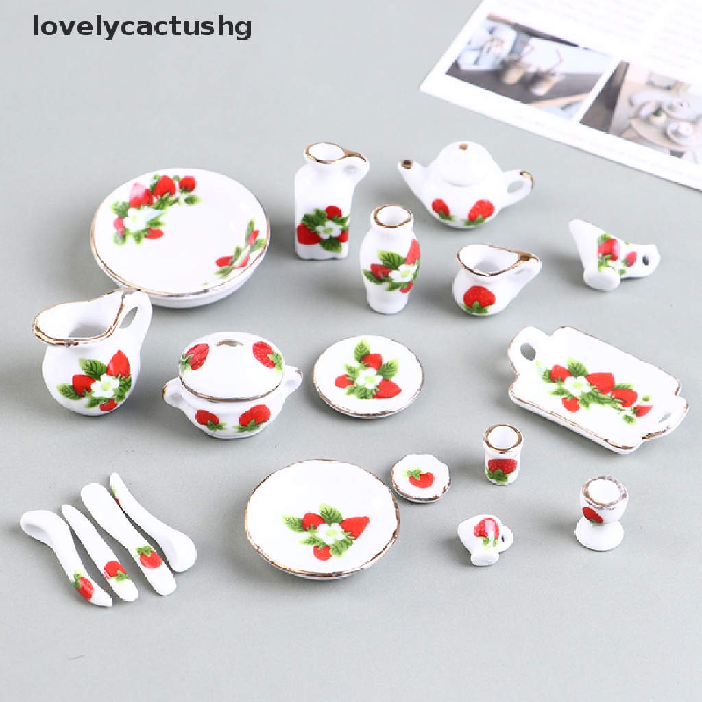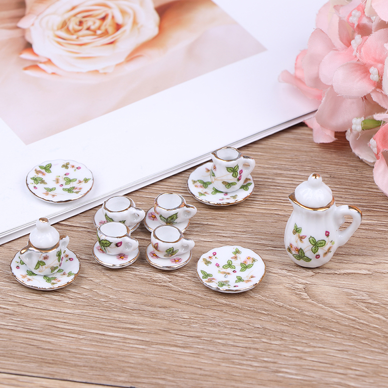 400/15 Peças 1 : 12 Conjunto Pratos/Cup/Tea/Miniatura Talheres De Porcelana Para Dollhouse