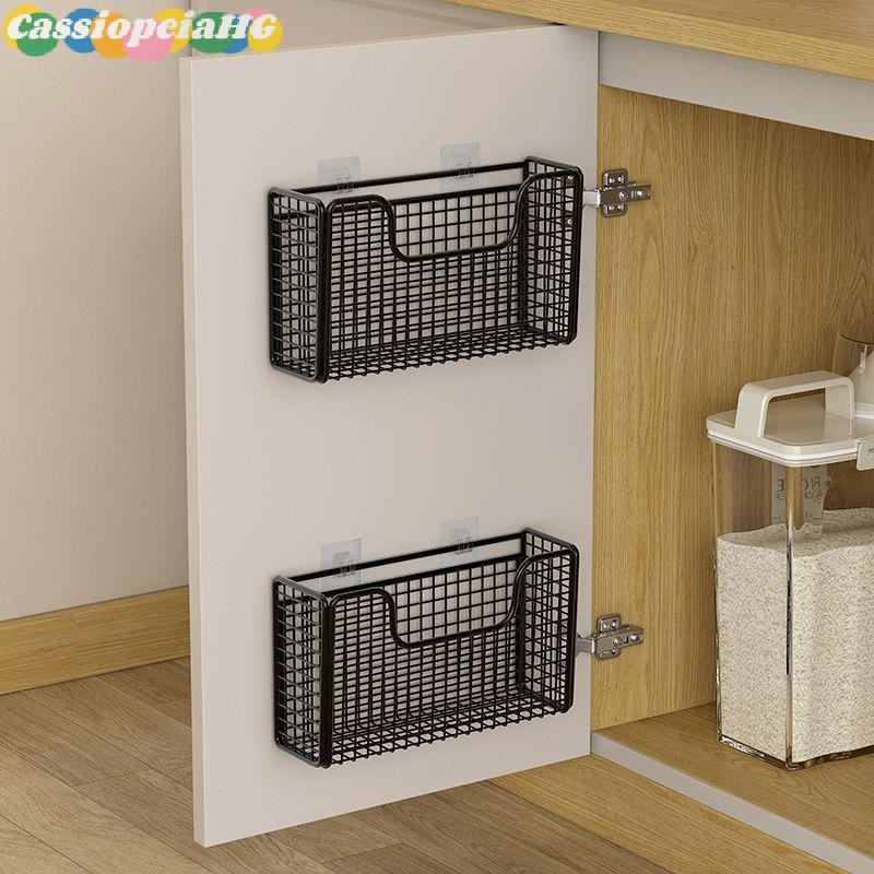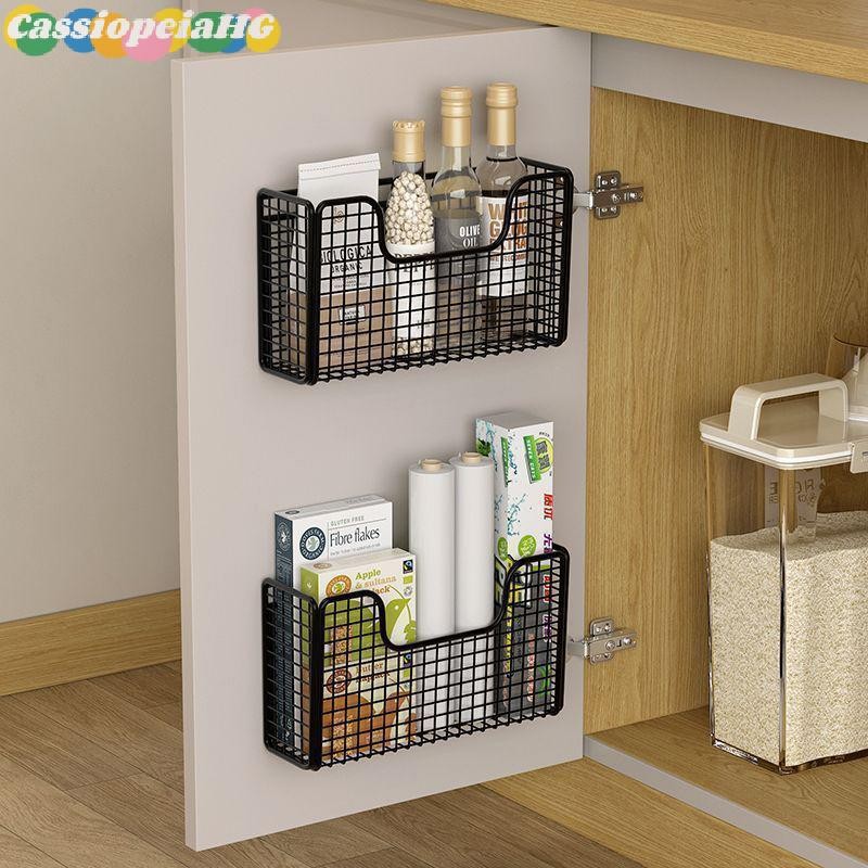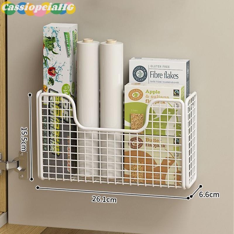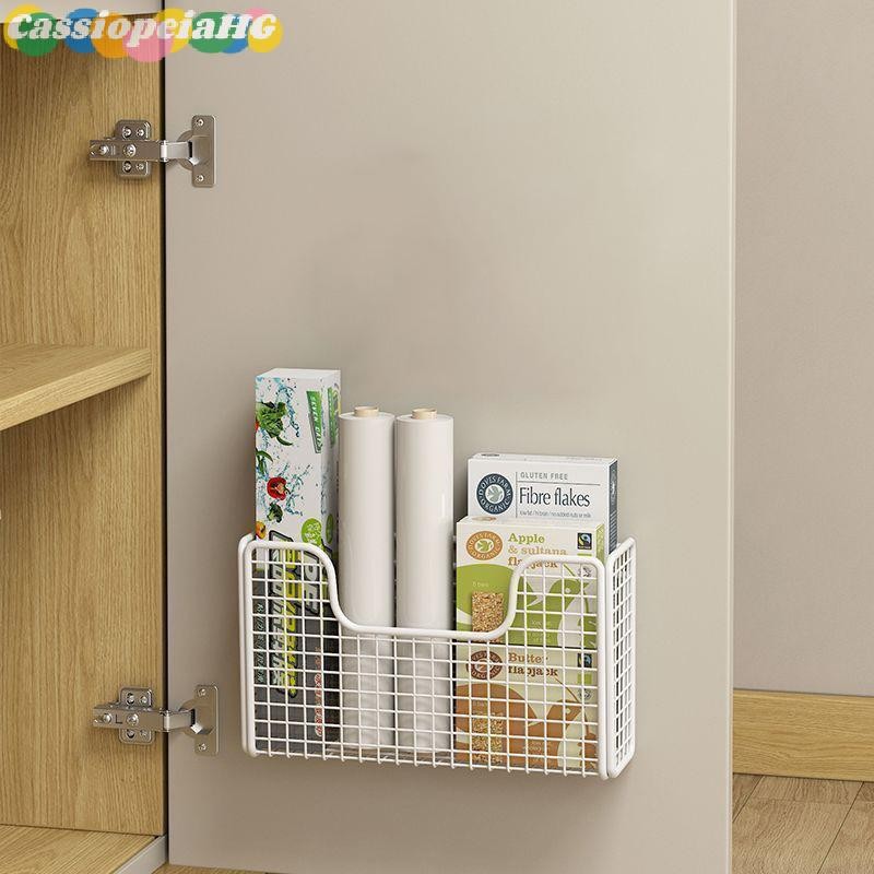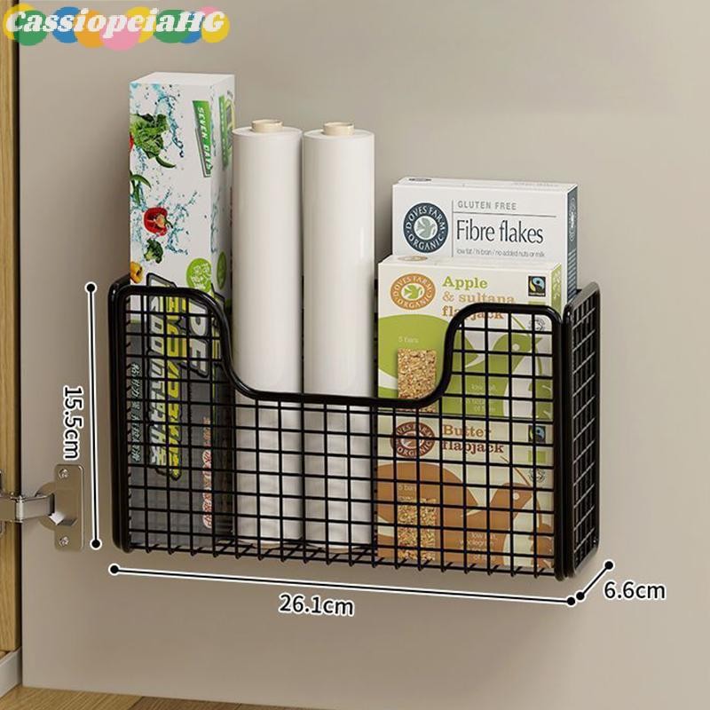 (Cassiopeiahg) Caixa De Armazenamento De Porta De Armário De Cozinha Sem Perfuração Rack De Ferro Parede Envoltório De P