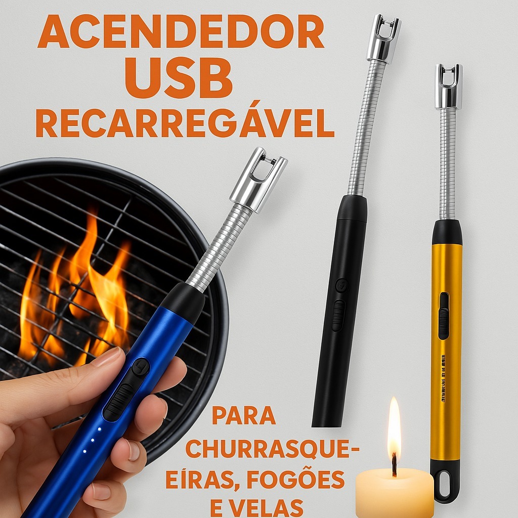 Acendedor De Fogão Isqueiro Eletrico Fogão Churrasqueira Vela Original Recarregavel USB