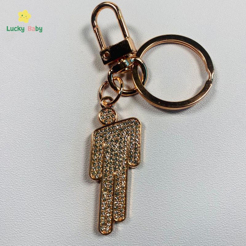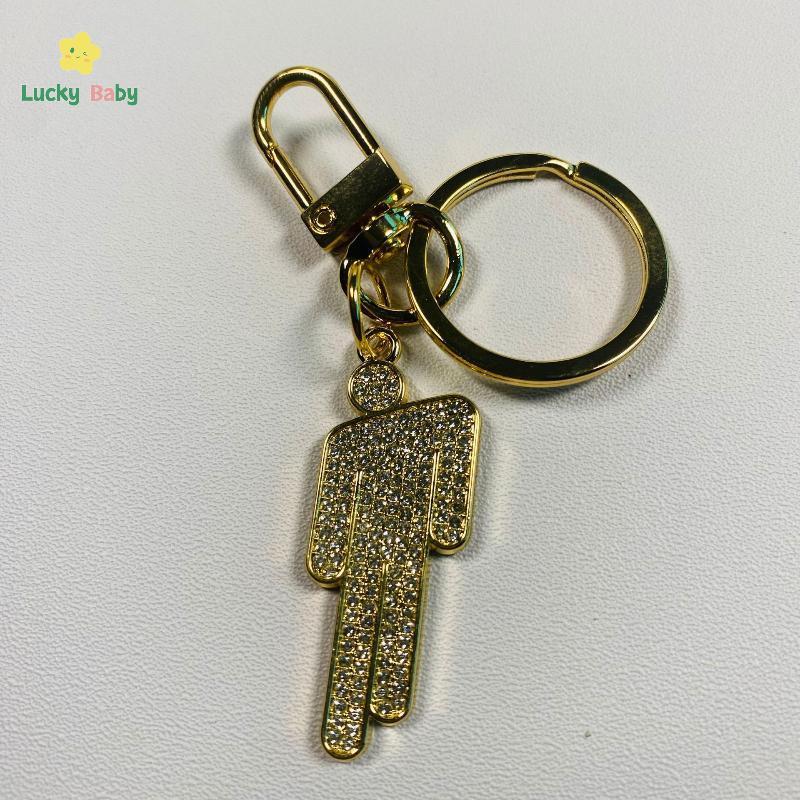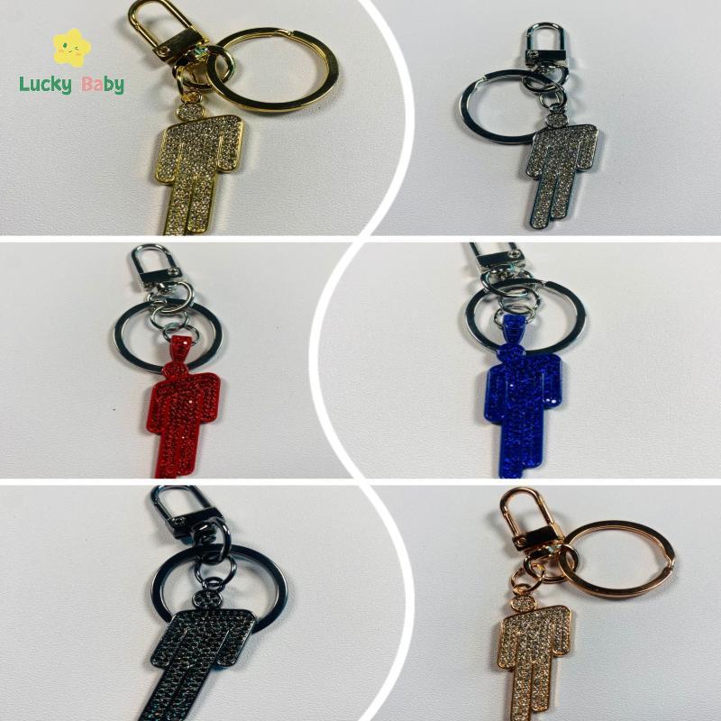 [Luckybaby-t] 1/2 Unidades Hip-hop Billie Pequena Figura Pingente Desenho Animado Fora Do Centro Strass Chaveiro Moda Lu