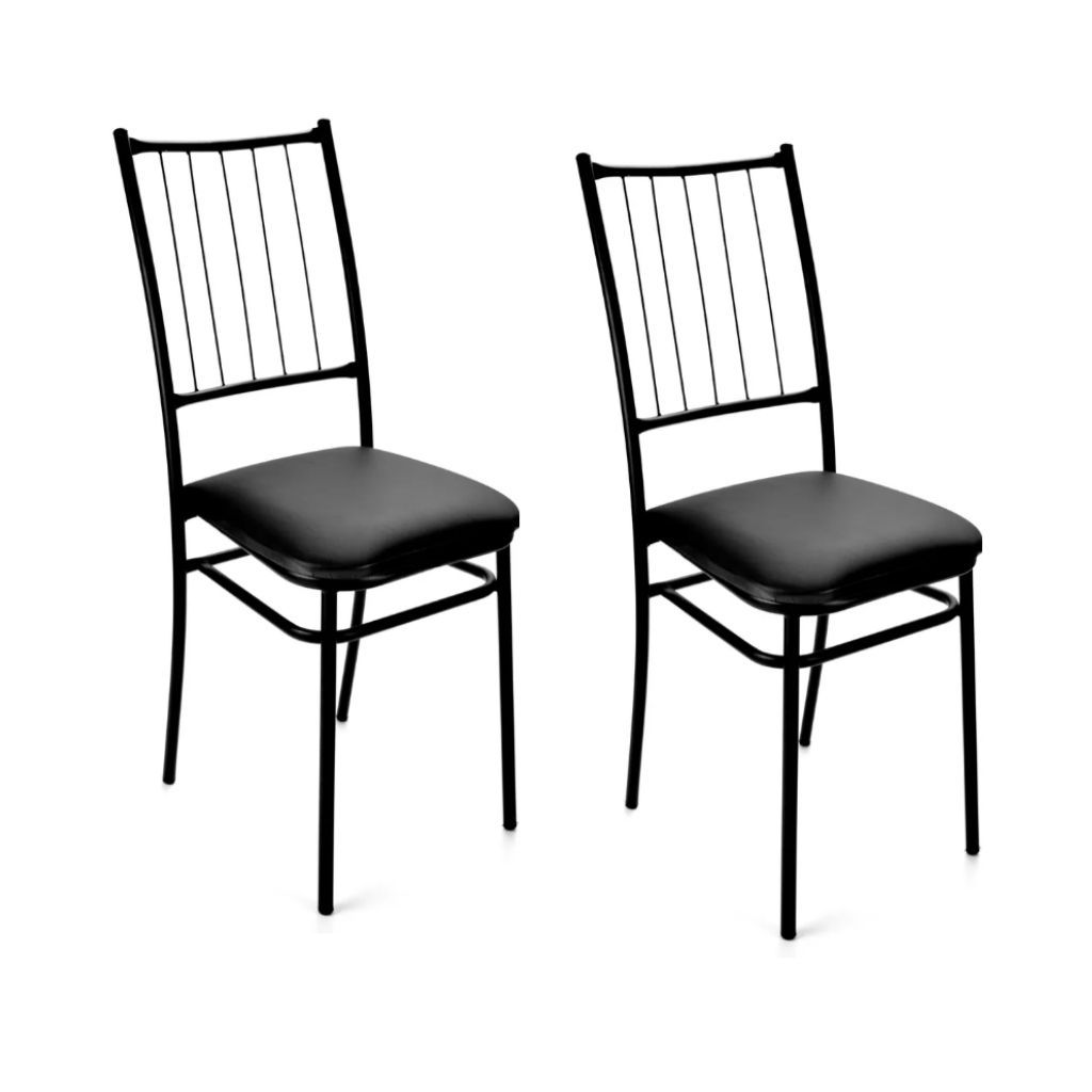 Kit 2 Cadeiras Buffet Pretas Sala de Jantar Cozinha Em Aço Reforçado Confortável
