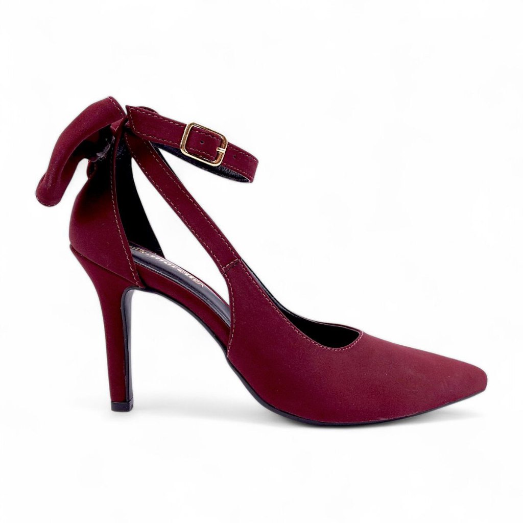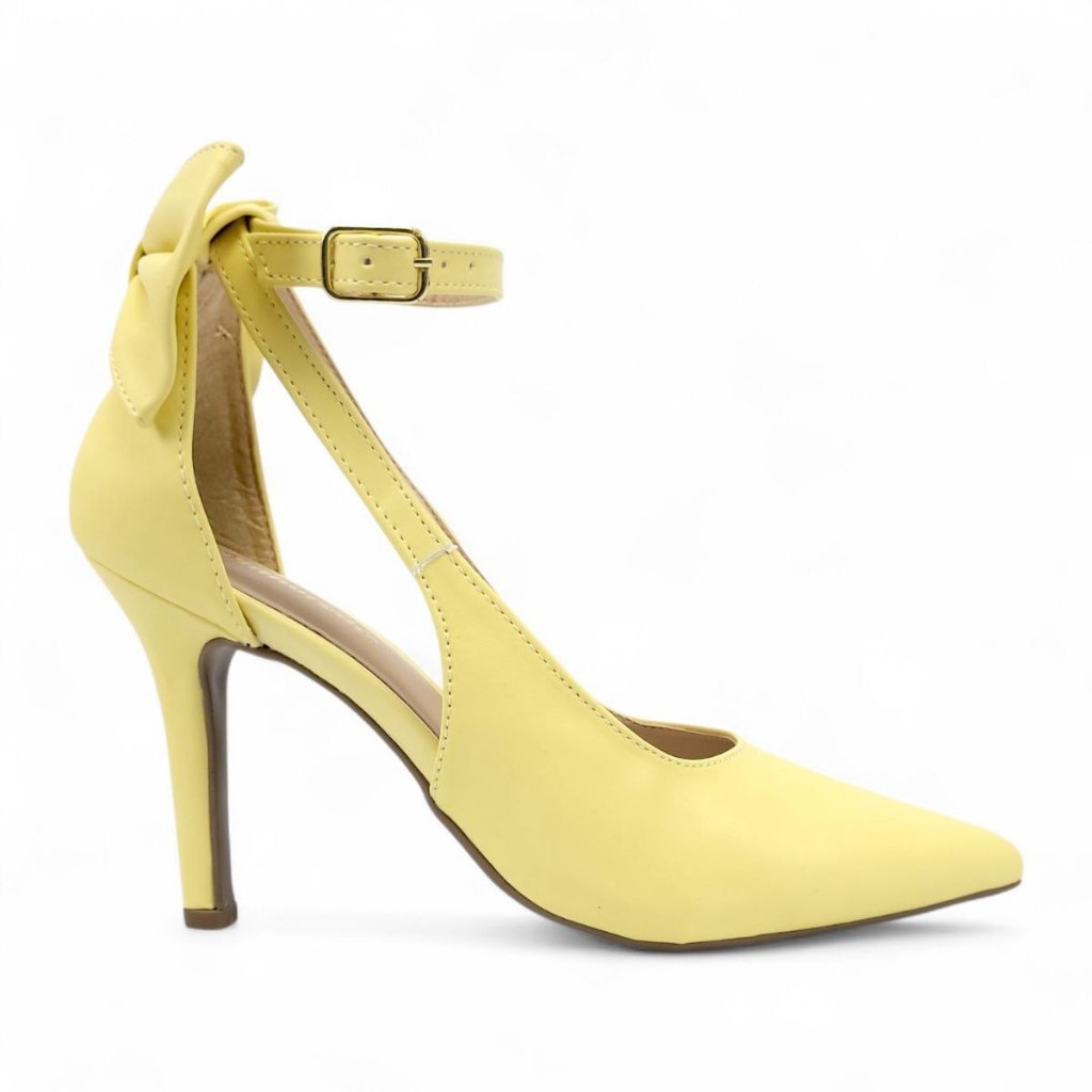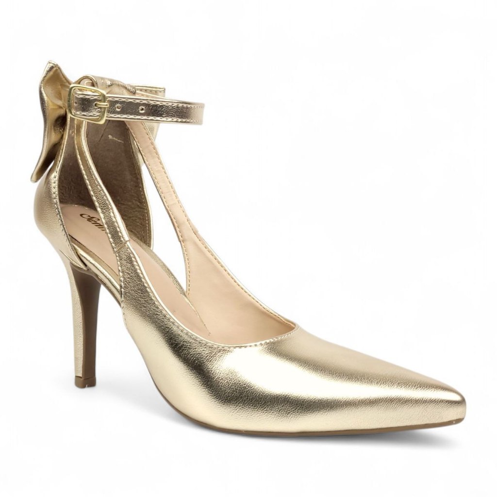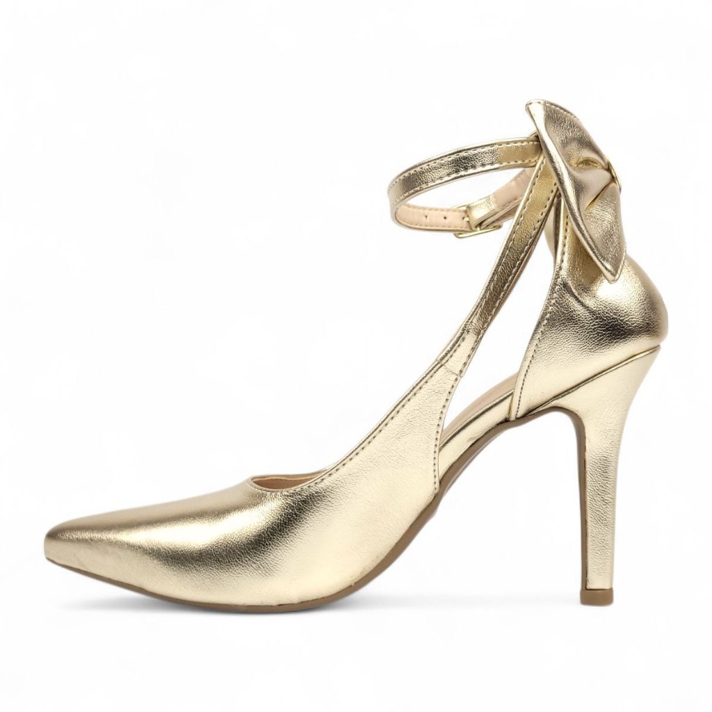 Sapato Scarpin Dourado Salto Alto Bico Fino Com Laço 9,5cm