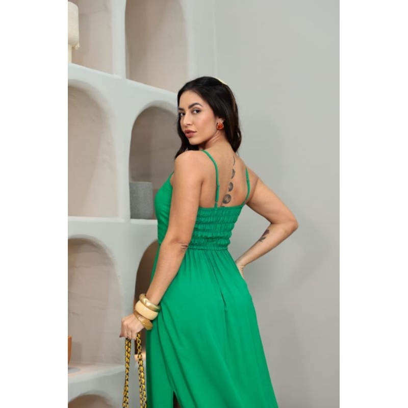 vestido longo con fenda nos laterais tecido viscolinho