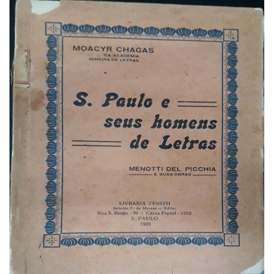 São Paulo e seus homens de letras autor Moacyr Chagas