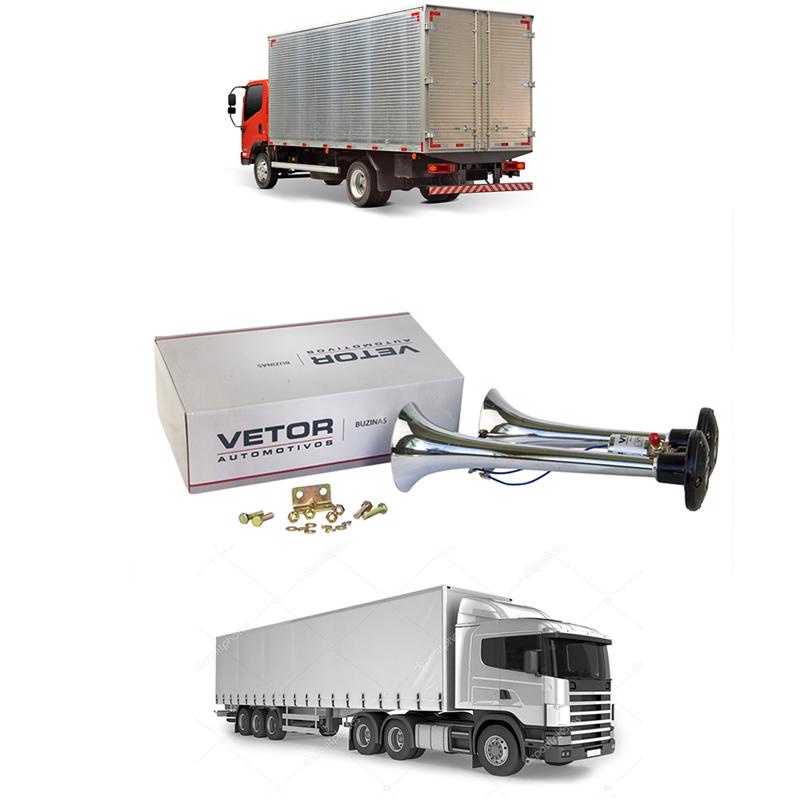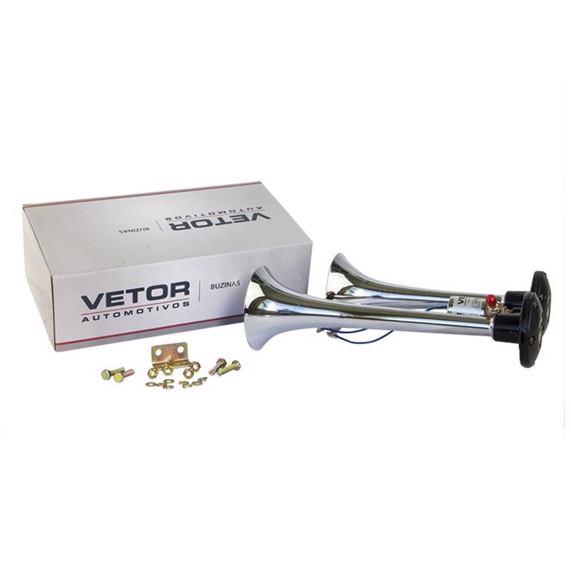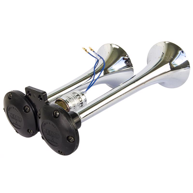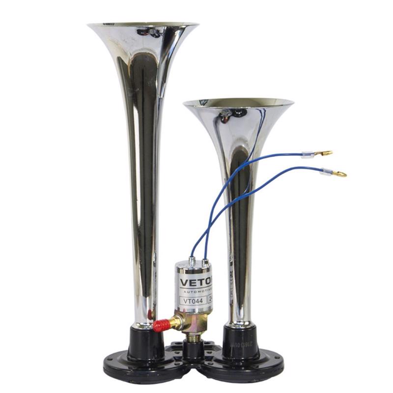 Buzina Ar 2 Corneta Caminhão Carro Maritima 24 Volts Dupla Cromada