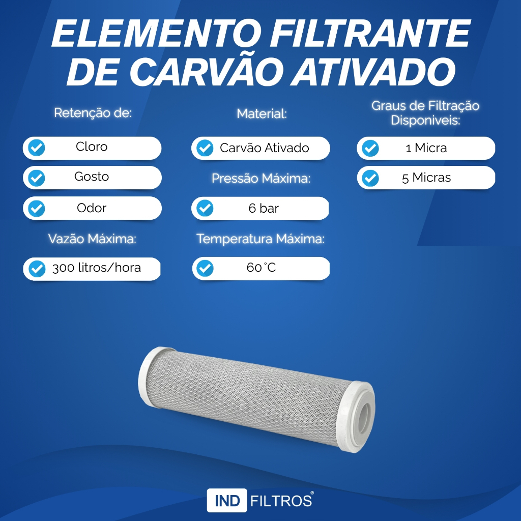 Refil Filtro Hoken Polipropileno E Carvão Ativado