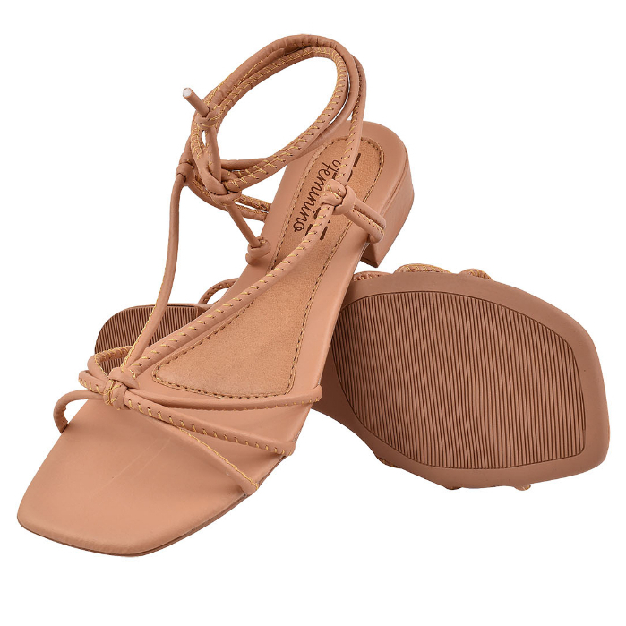 Sandalia de Salto Femino Amarração Saltinho Baixo Casual Moda Leve Toque Feminino Confortável