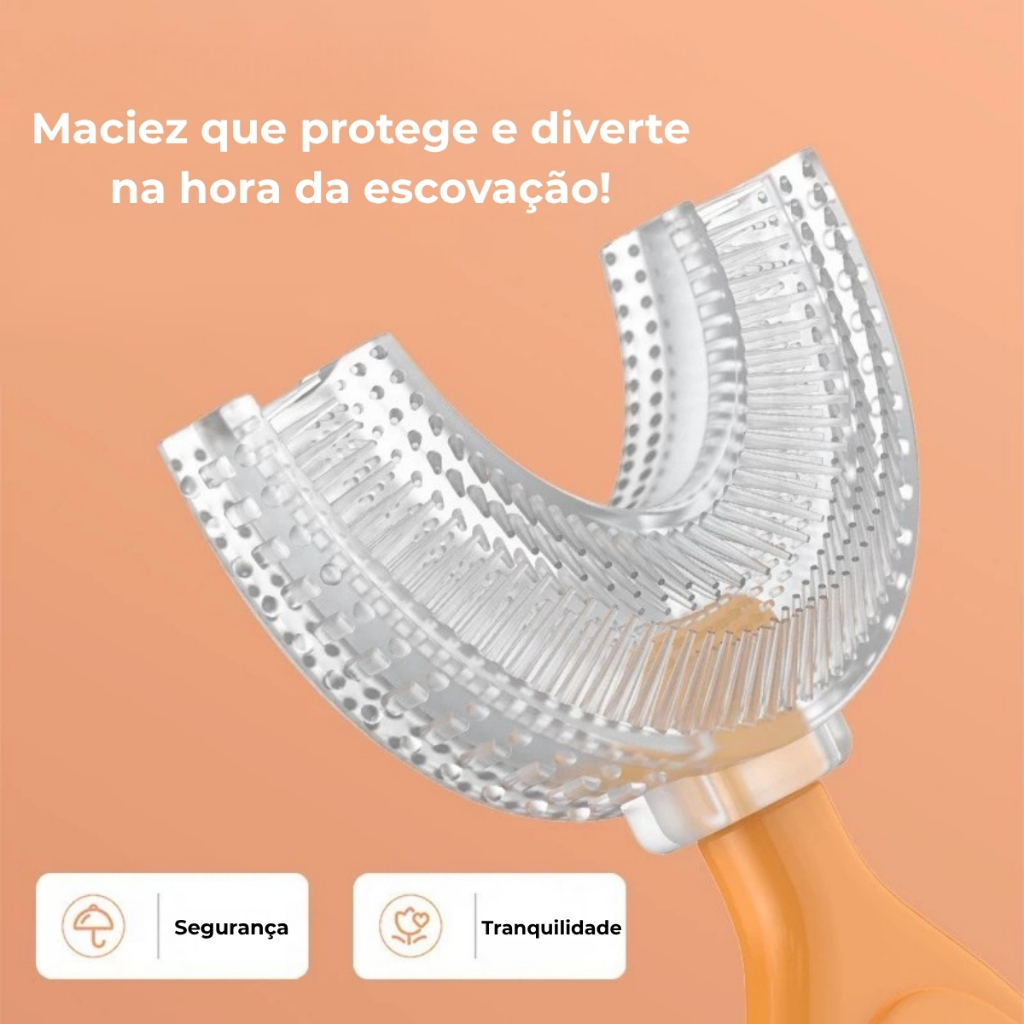 Kit 2 Escovas Dental Infantil Formato U 360° Silicone Cerdas Macias Bebê Criança Higiene Oral