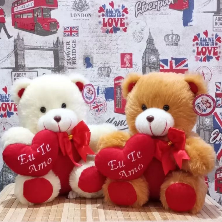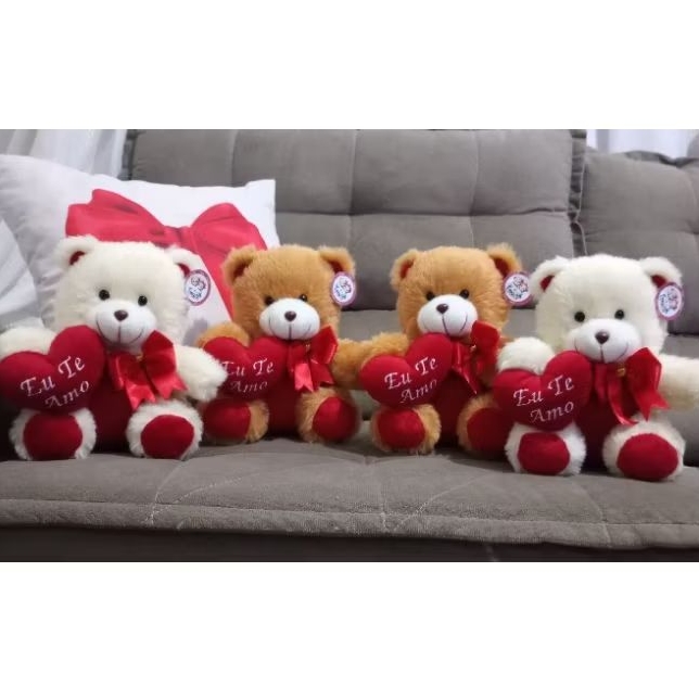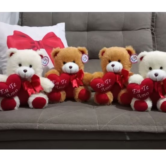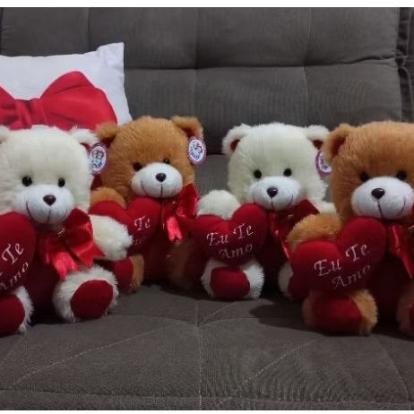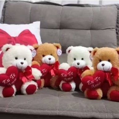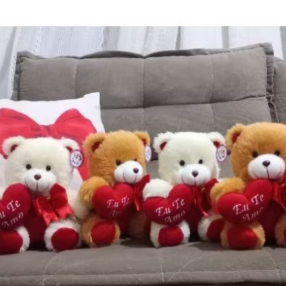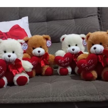 4 ursinhos de pelúcia, 20cm cada. Sendo eles; 2 caramelo e 2 palha com vermelho. Ideal para montar cestas