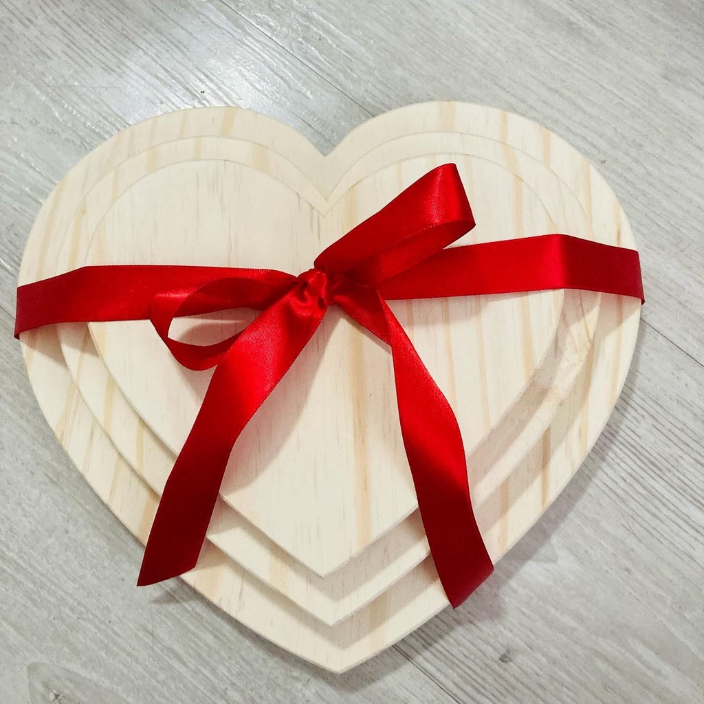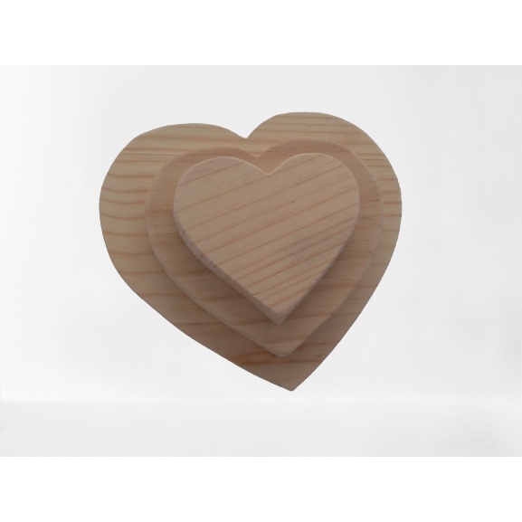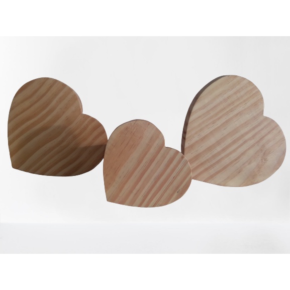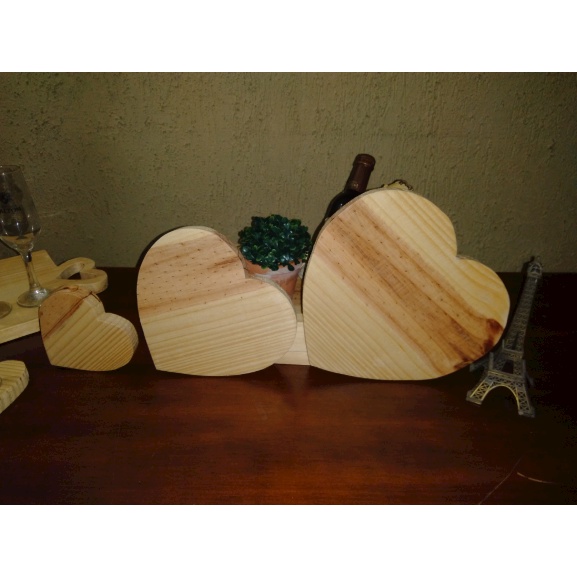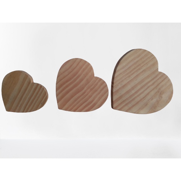 trio coração tábuas de madeira pinus, mesa posta casa(20cm, 15cm e 11cm)