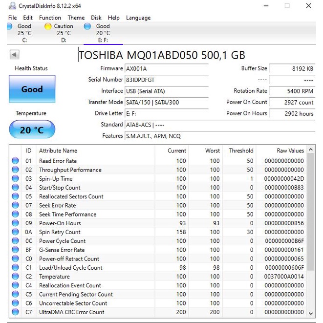 TOSHIBA MQ01ABD050 500 GB H617