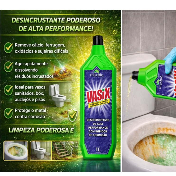 Desincrustante Vasix Maxbio Removedor de Crostas Vaso Sanitário Remove Cálcio e Ferrugem 500ml