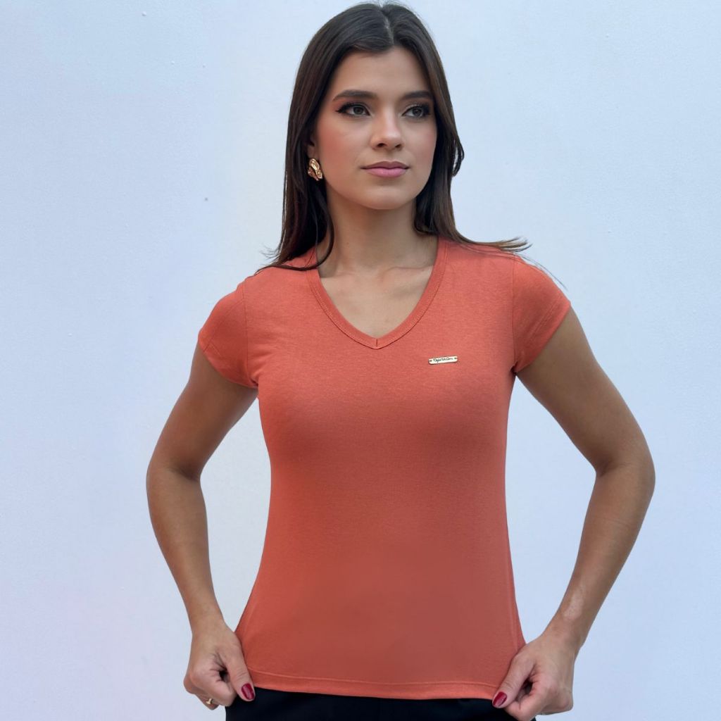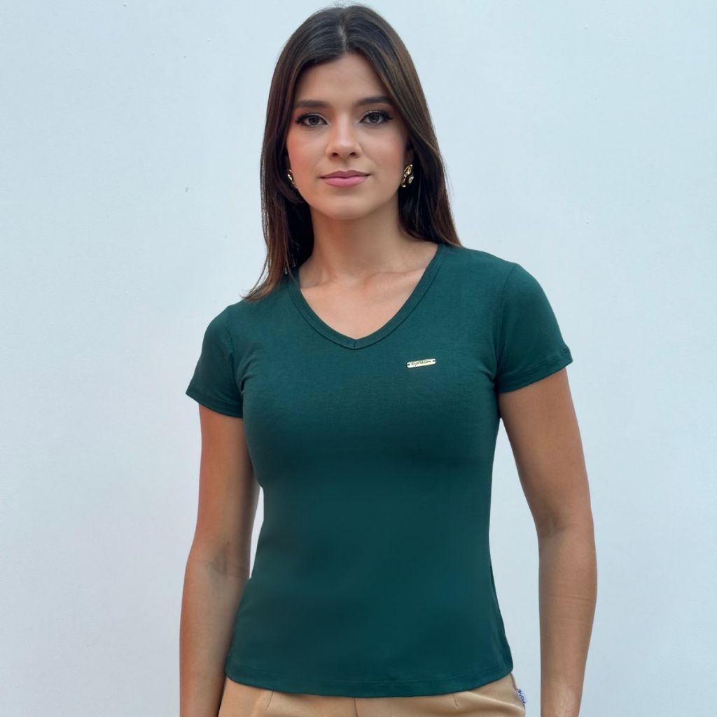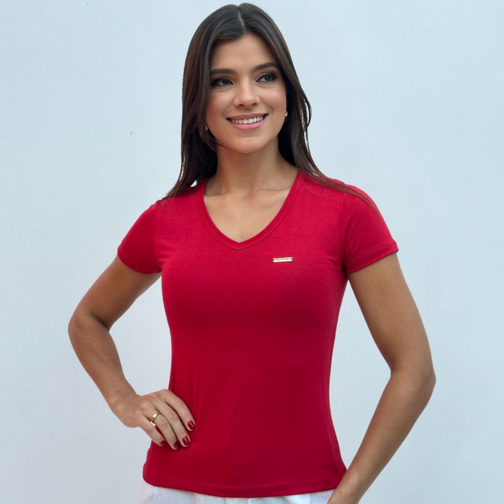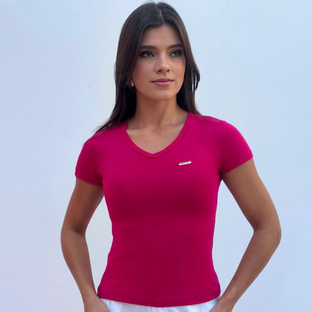 Blusa Baby Look Feminina Gola V em Viscolycra Básica Confortável e Estilosa