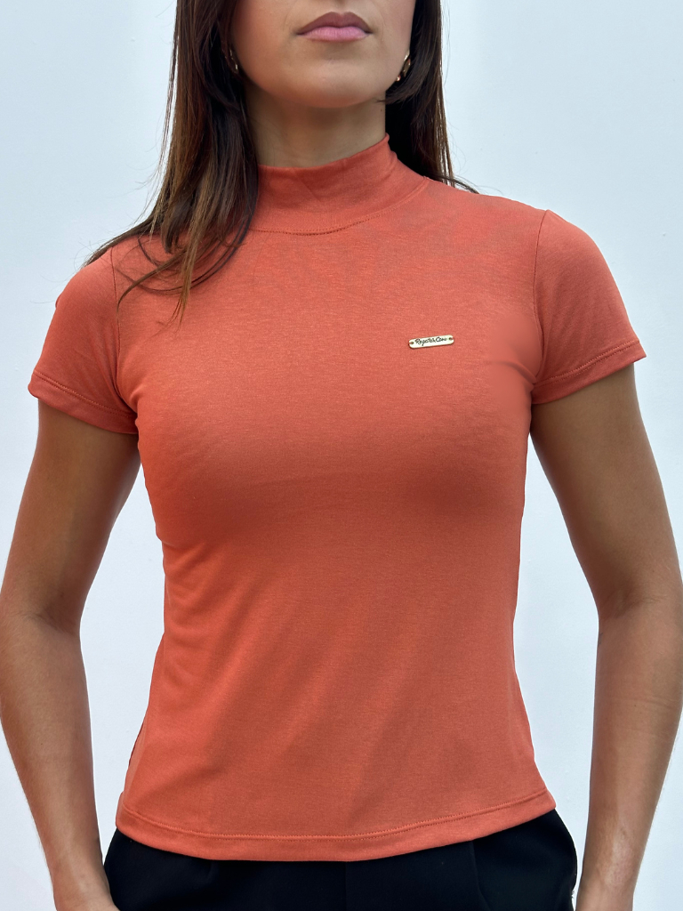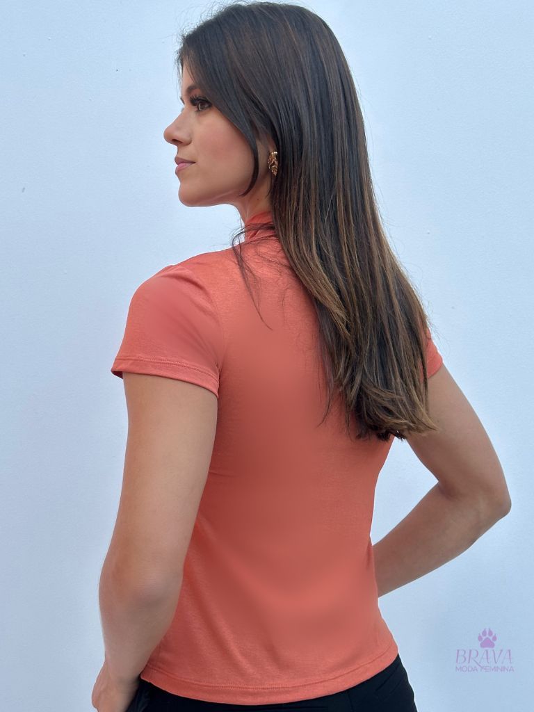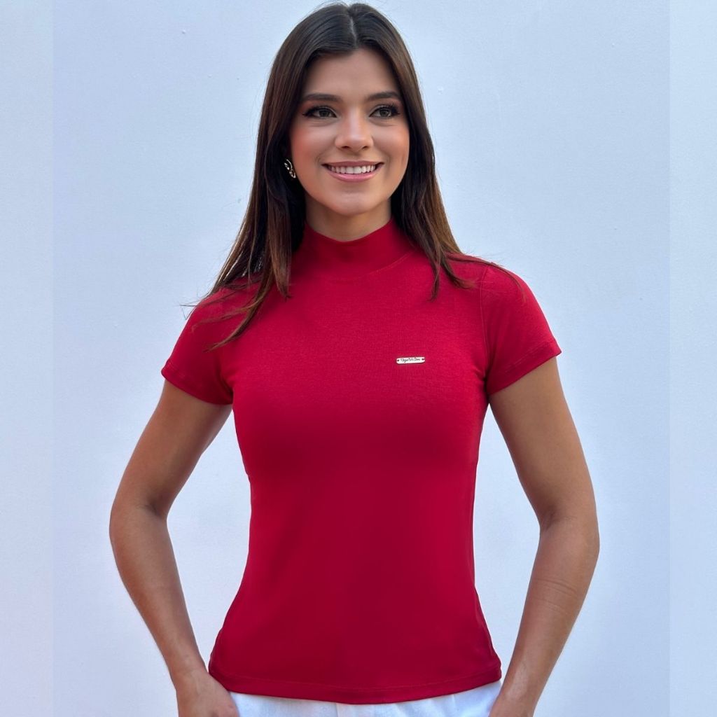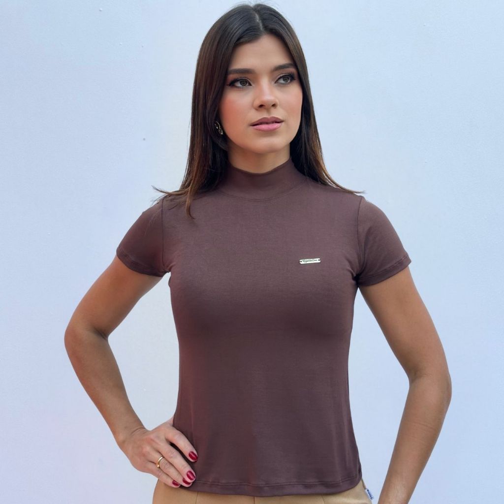 Baby Look Feminina Gola Alta Tecido Viscolycra Blusa Manga Curta Moda Casual Conforto Básica Dia a Dia Elegante Casual
