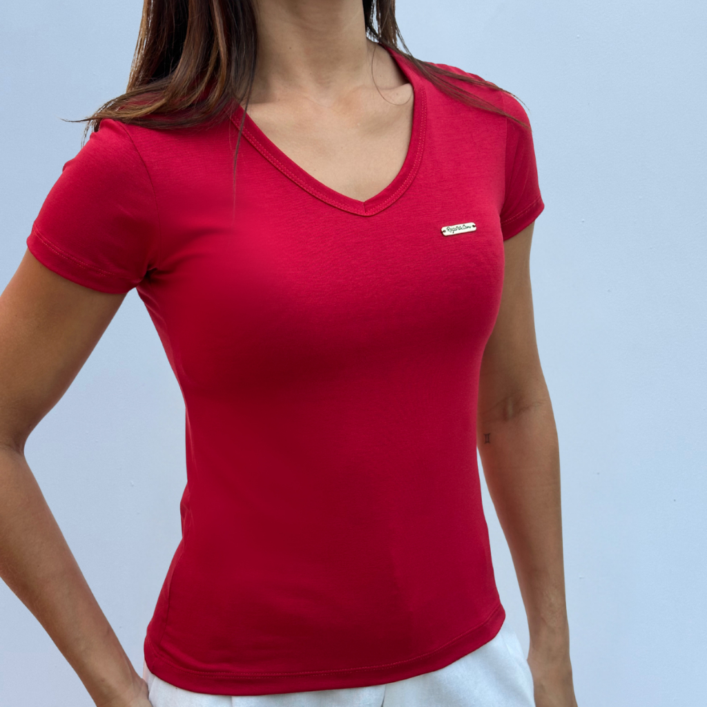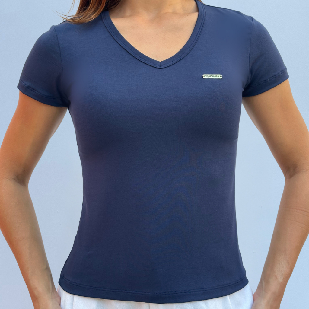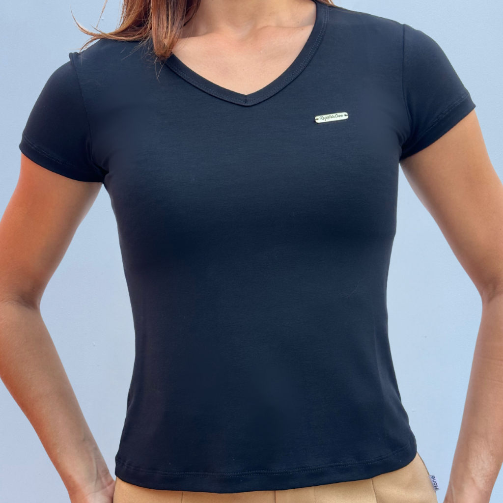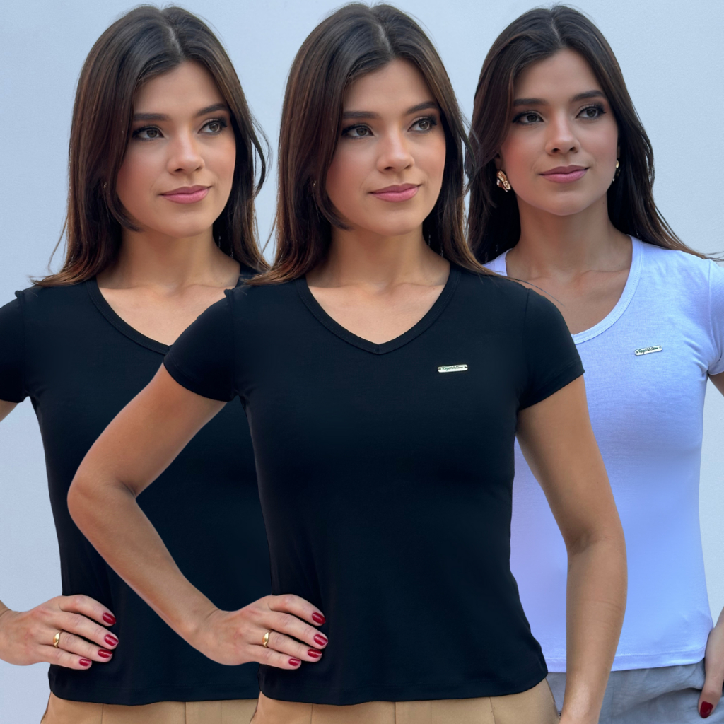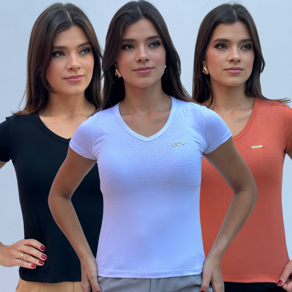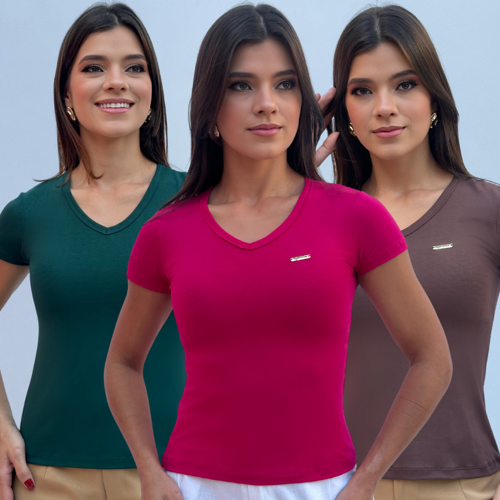 Kit 3 Baby Look Gola V Moda Básica Atual Blusa Feminina Malha Viscolaycra Manga Curta Confortável Elegante Moderna