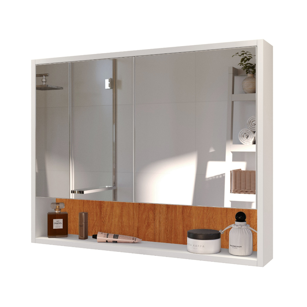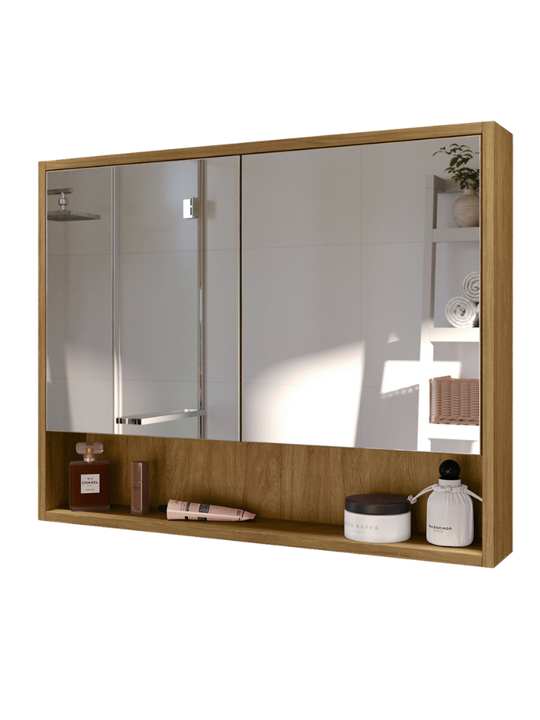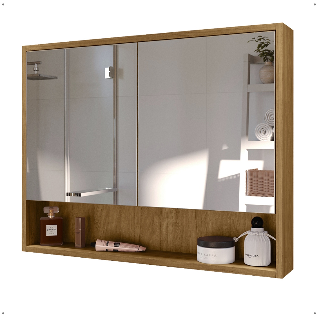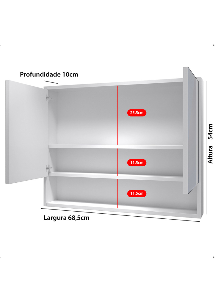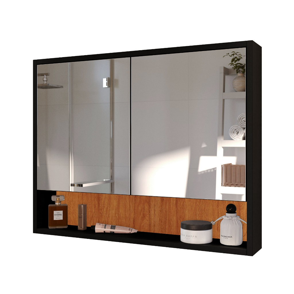 Armário De Banheiro Suspenso Com 2 Portas 68cm Largura Espelheira