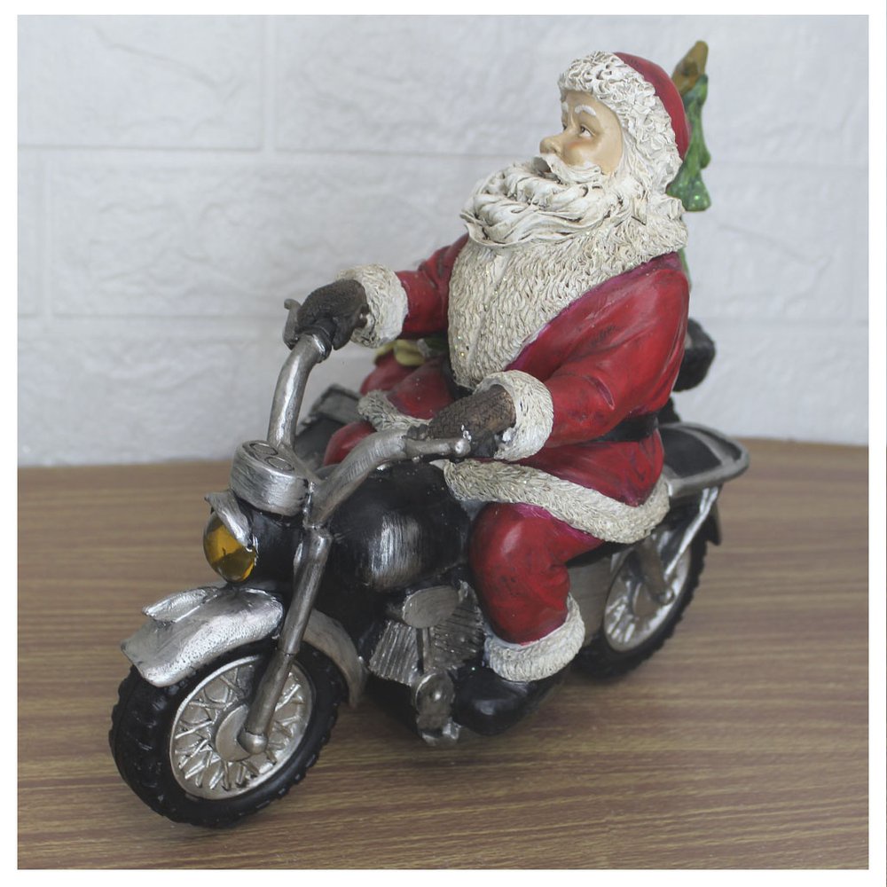 Enfeite Natal Musical Papai Noel Motoqueiro Com LED 30cm