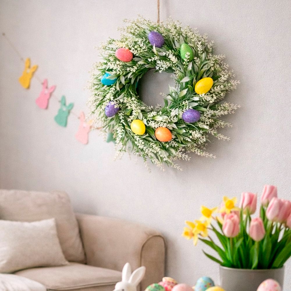 Guirlanda Páscoa Decoração Enfeite Lavanda Ovos Coelho 30cm