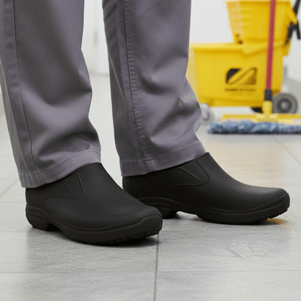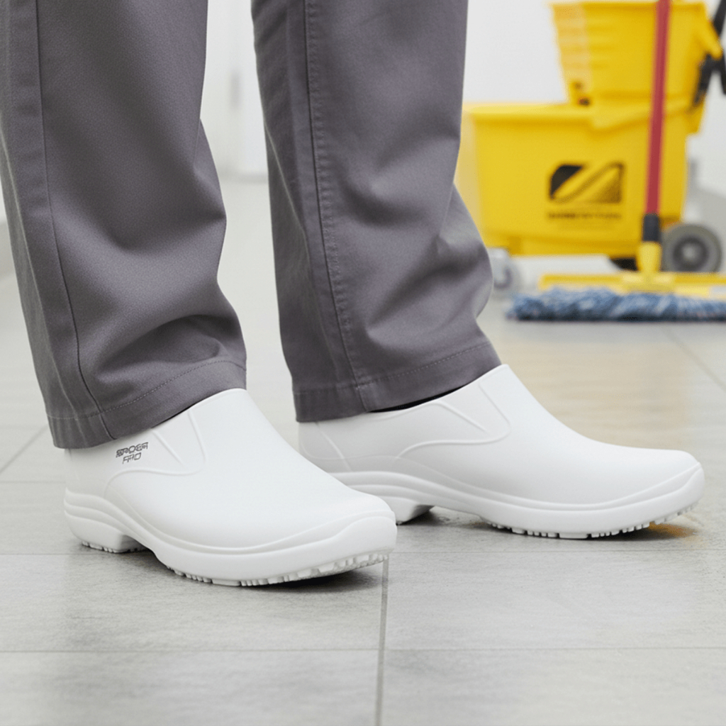 Sapato Antiderrapante Fechado Emborrachado TPE Para Limpeza Profissional de Cozinha Cozinheiro