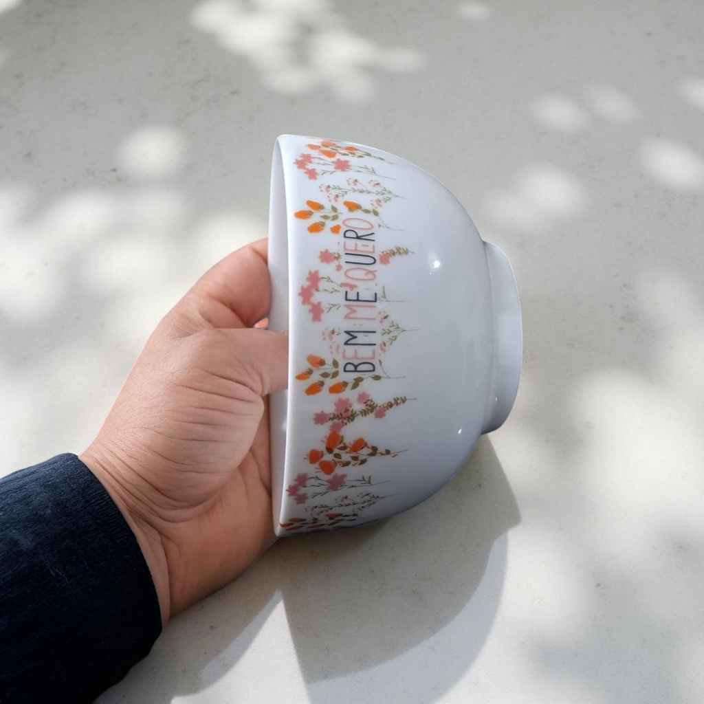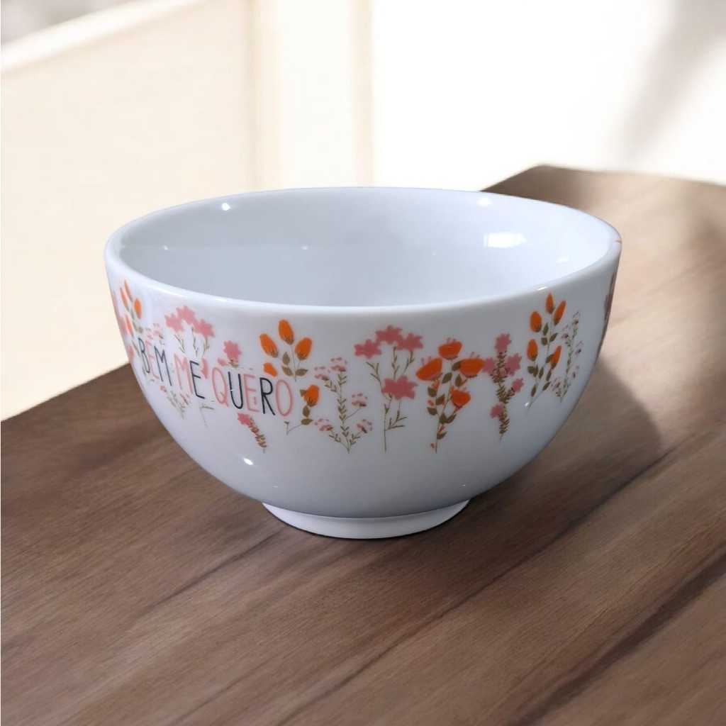 Tigela Bowl Porcelana Sobremesas 400ml Várias Estampas Cores Decorada Cumbuca Primavera Frases Amor