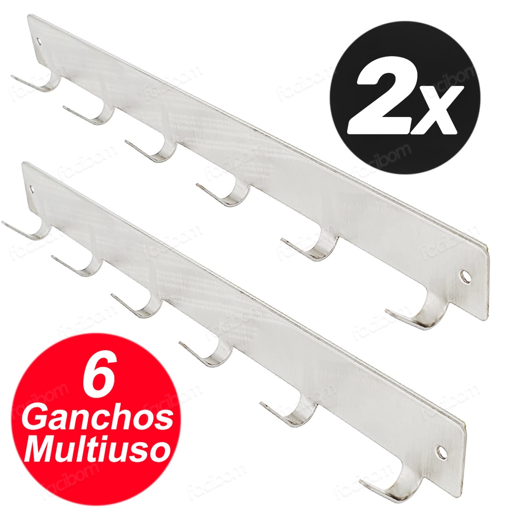 Kit 2 Cabide Para Parede Multifuncional Em Metal Cromado