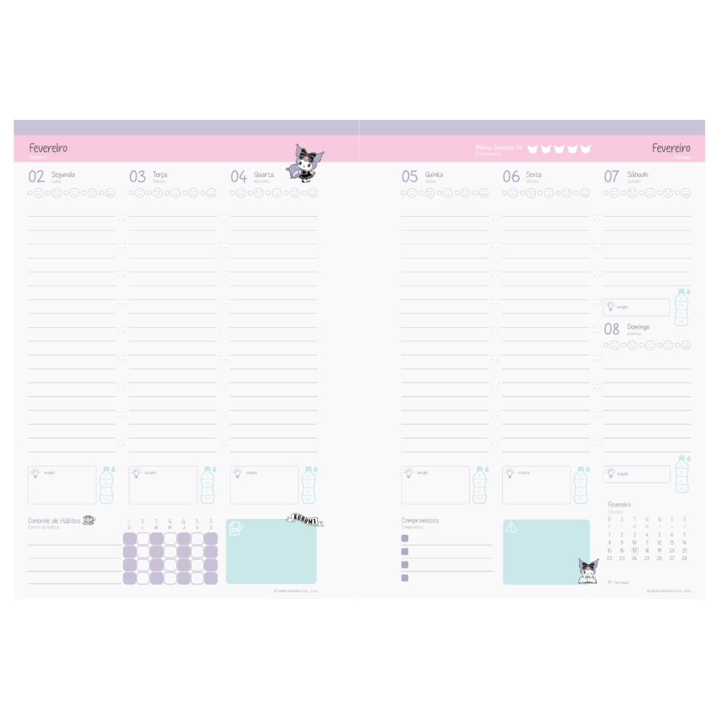 Agenda Planner College 2026 Kuromi 160 Páginas Offset 75g Tamanho 175x242mm Jandaia.