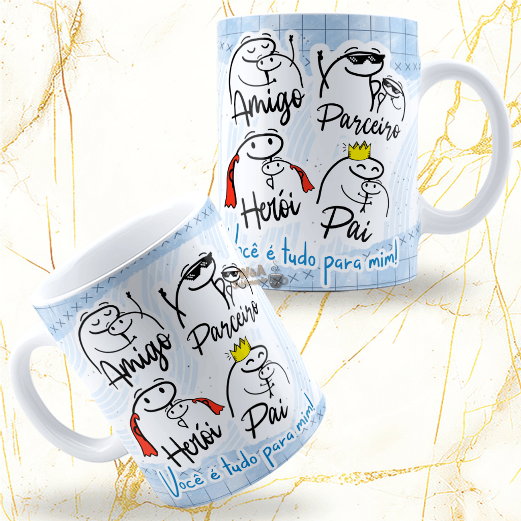 Caneca personalizada boneco pai flork xícara presente masculino porcelana 325ml