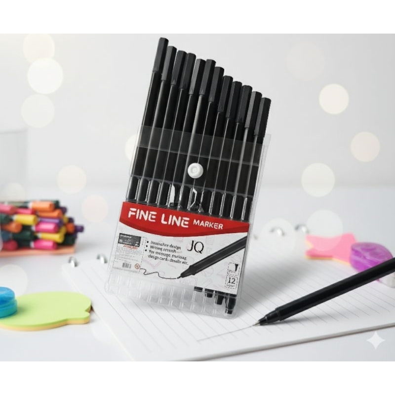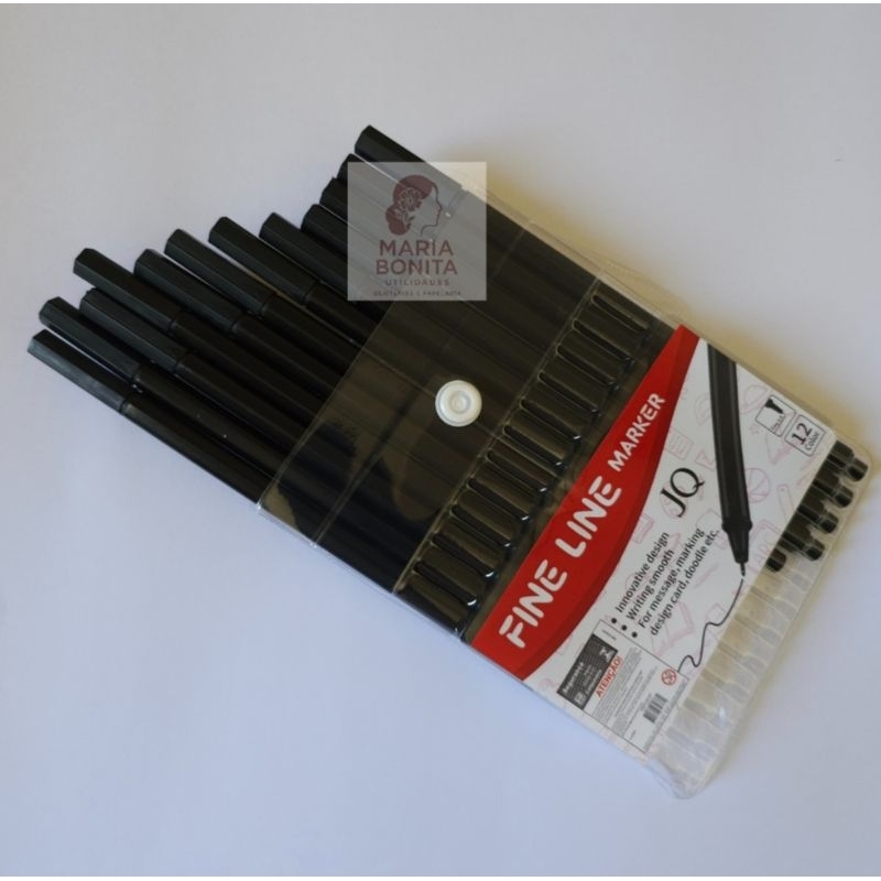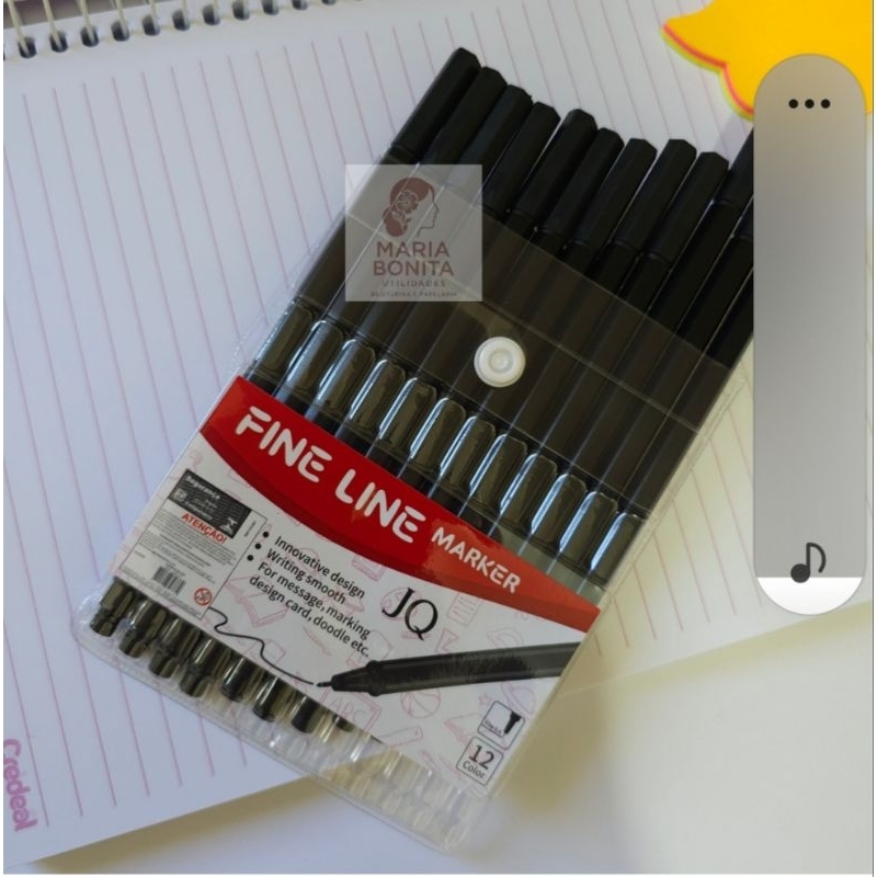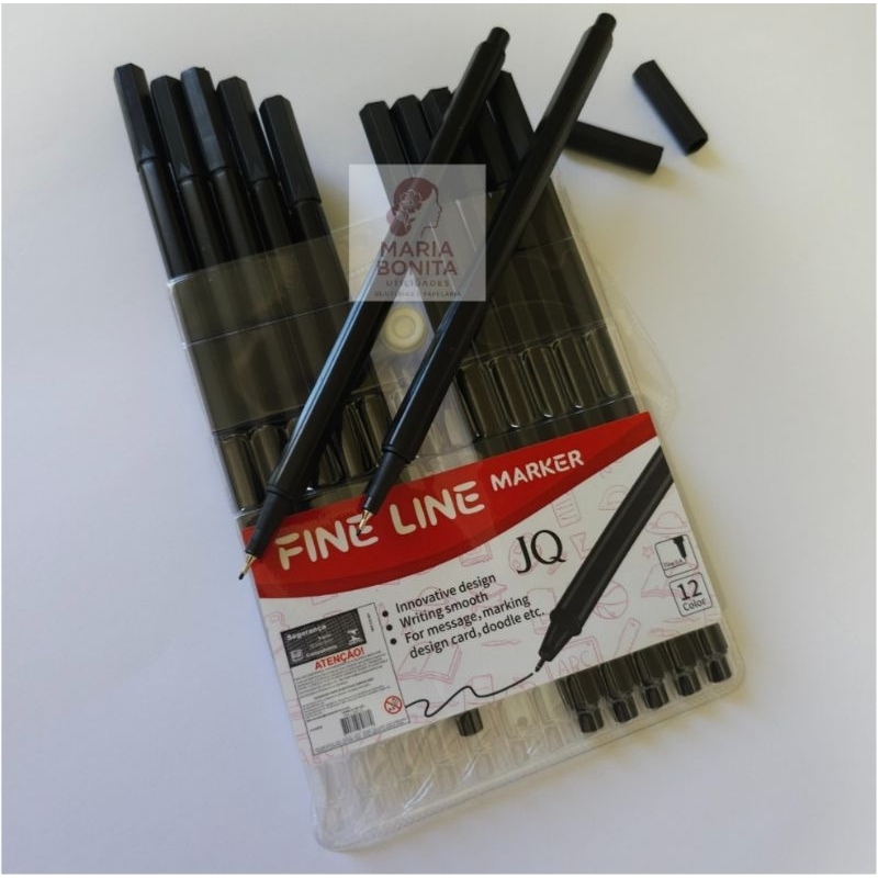 Kit 12 Canetas Pretas Fine Line Ponta Fina 0.4 mm