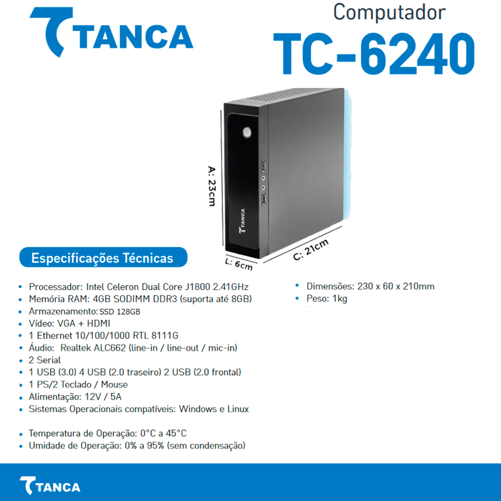 Mini CPU Tanca TC-6240S Intel Celeron Dual Core J1800 SSD128