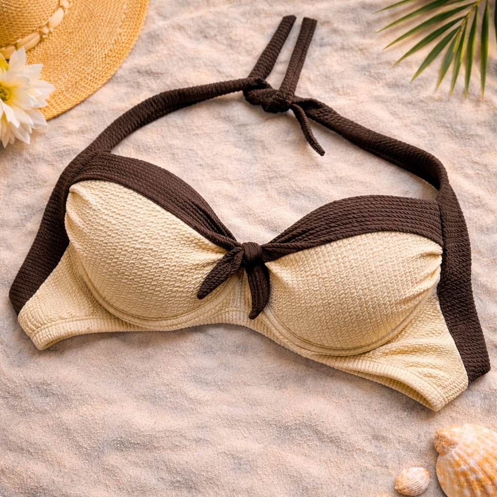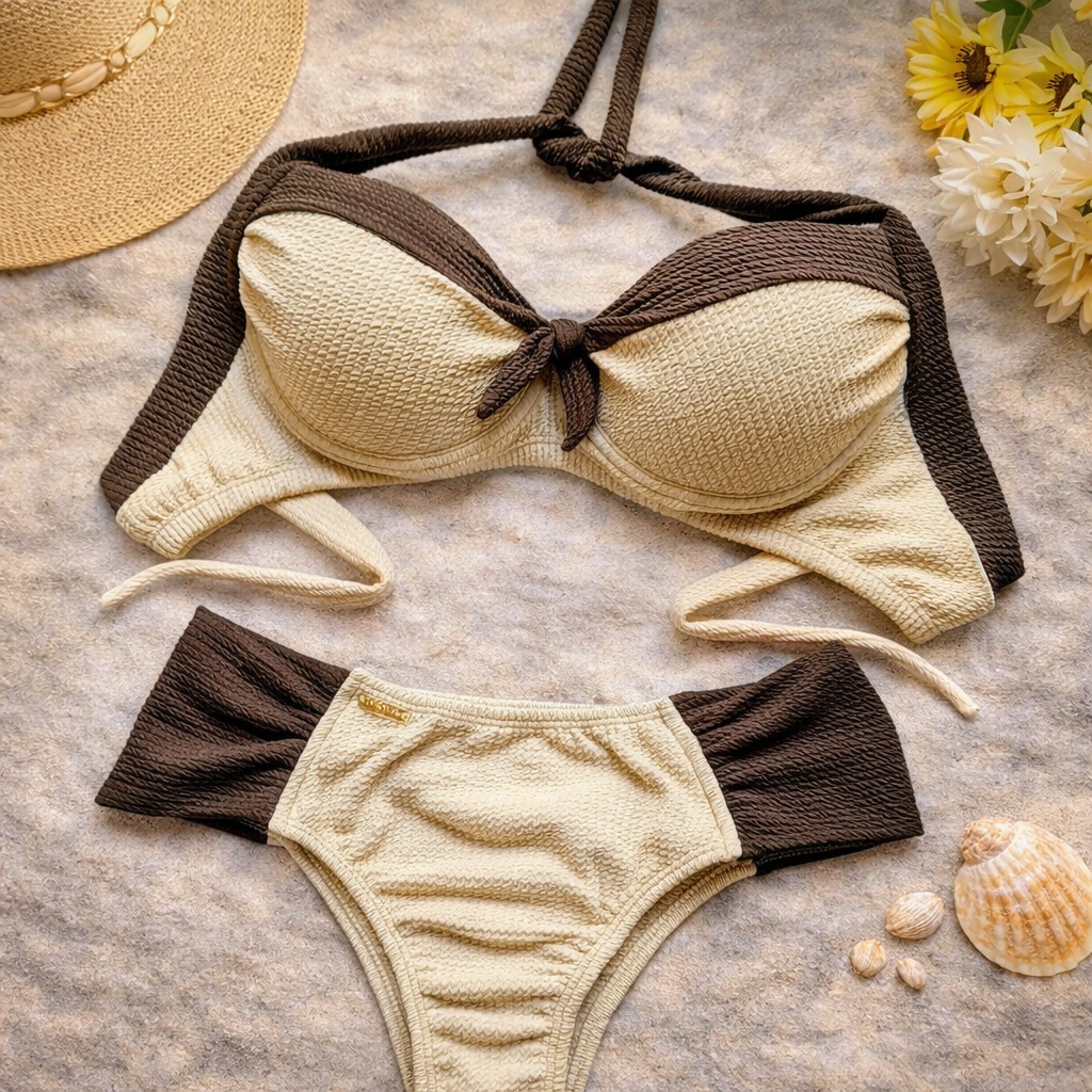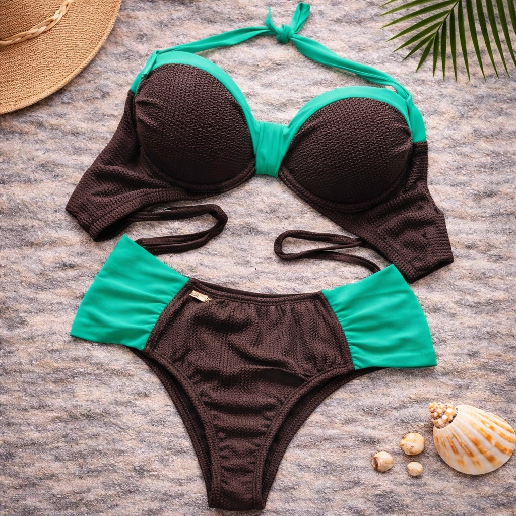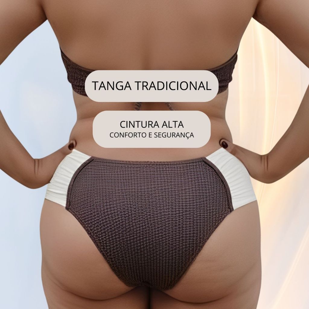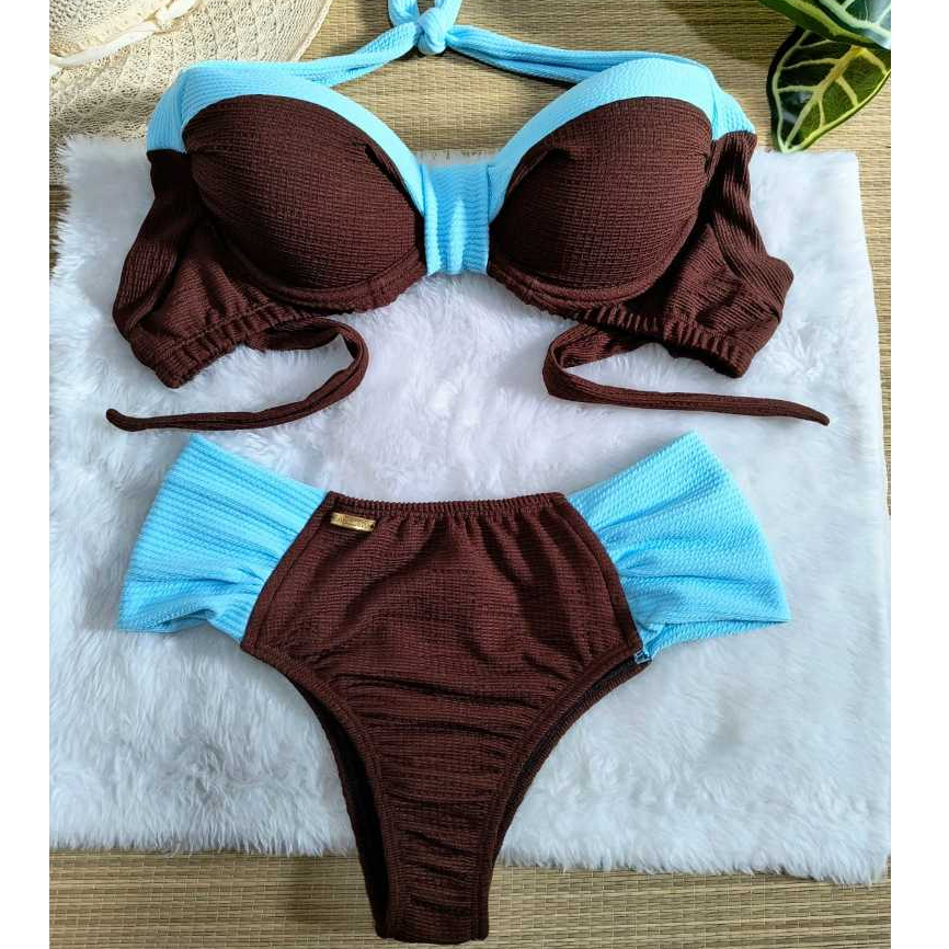 Conjunto Biquíni Feminino Marron 44 ao 54 Plus Size Bojo Meia Taça Confortável Com Calcinha Tanga Borboleta