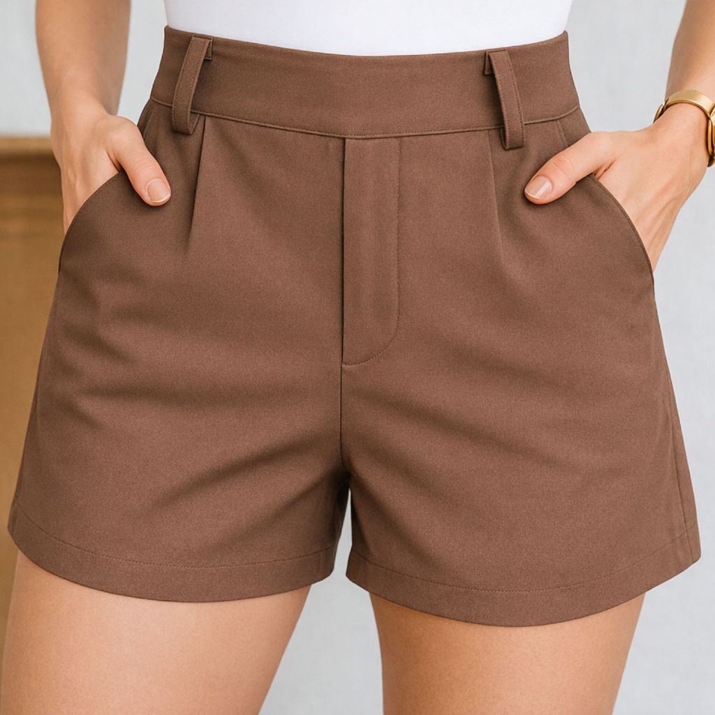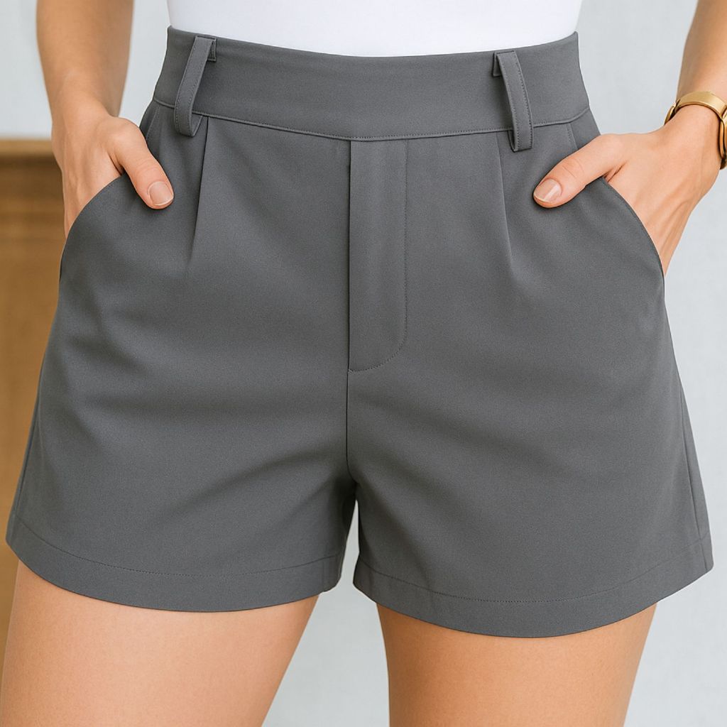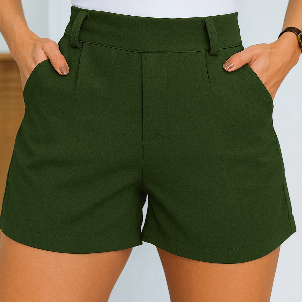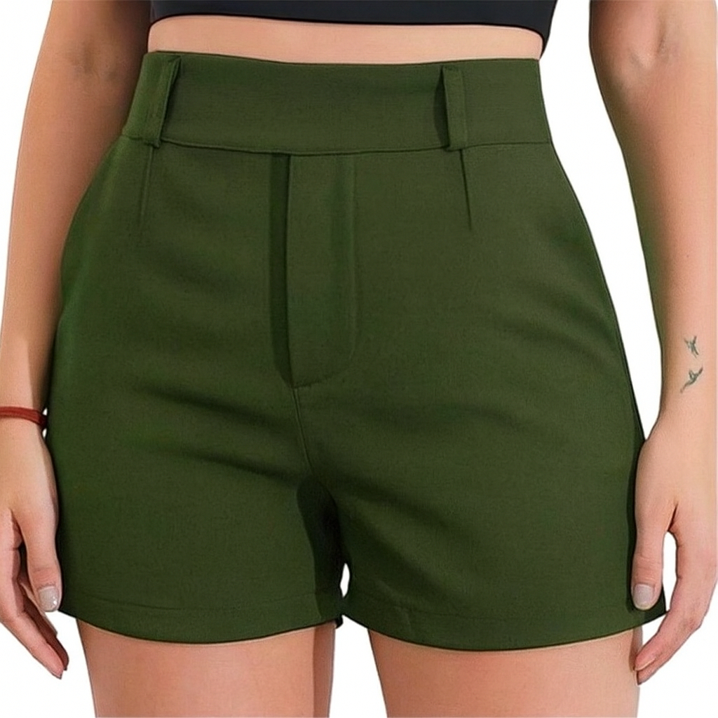 Short Feminino Alfaiataria Social Cintura Alta com Elástico Atras